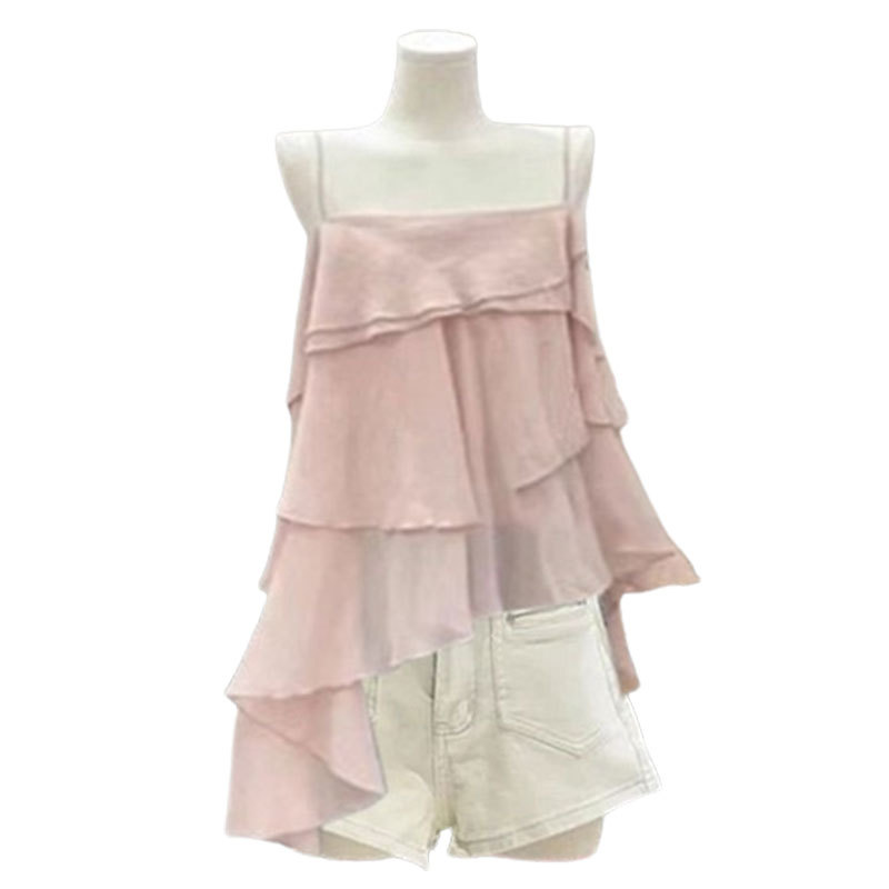 夏季纯欲穿搭一整套女新款设计不规则吊带上衣高腰短裤两件套