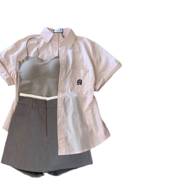 夏季穿搭一整套女新款韩版时尚吊带气质衬衫显瘦裙裤三件套