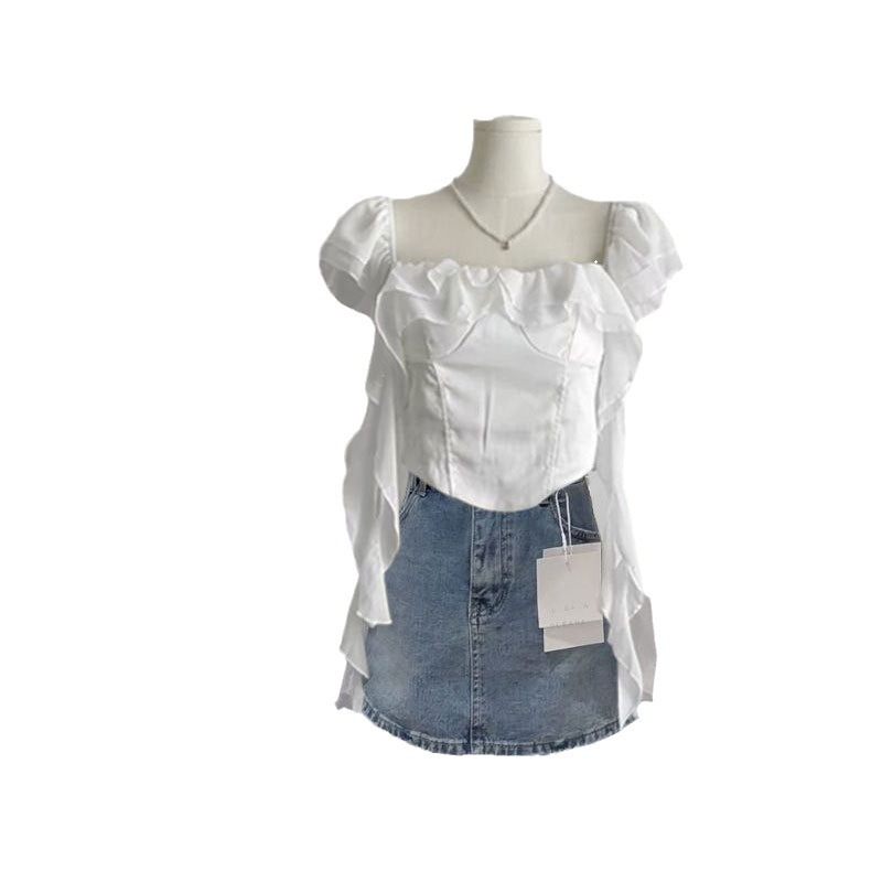 夏季名媛一整套女新款韩版时尚荷叶边上衣修身半身裙两件套装