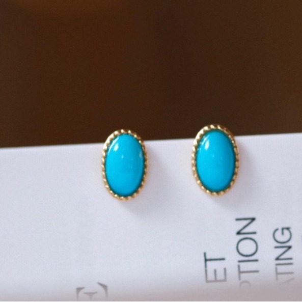925银镀金绿松石椭圆宫廷风中国风气质复古小众长款女士耳钉