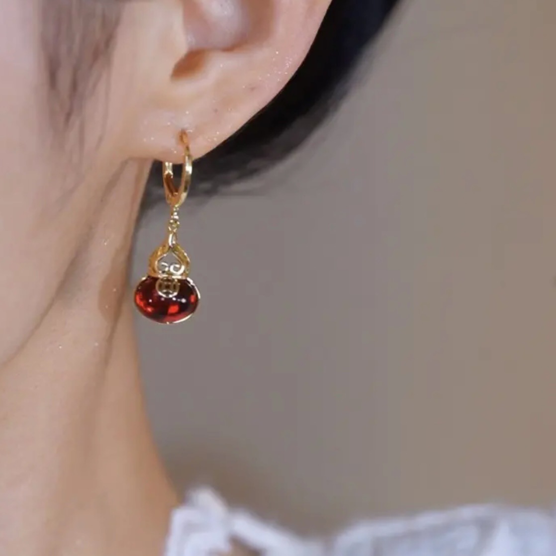 气质轻奢中国风红色葫芦耳环小巧精致高级感时尚百搭网红耳扣耳饰