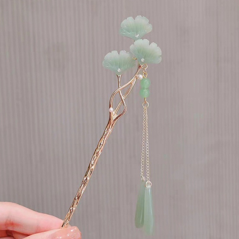 新中式高级感绿色扇叶流苏发簪古风盘发簪子小众步摇汉服国风发饰