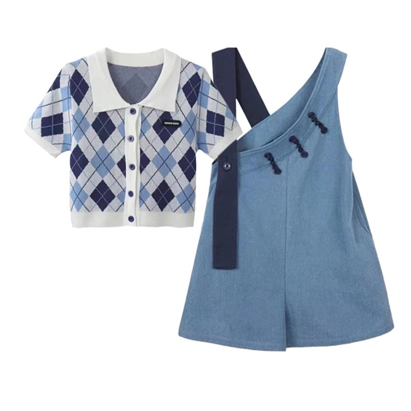 夏天可盐可甜穿搭女新款韩版休闲polo领短袖背带短裤两件套装