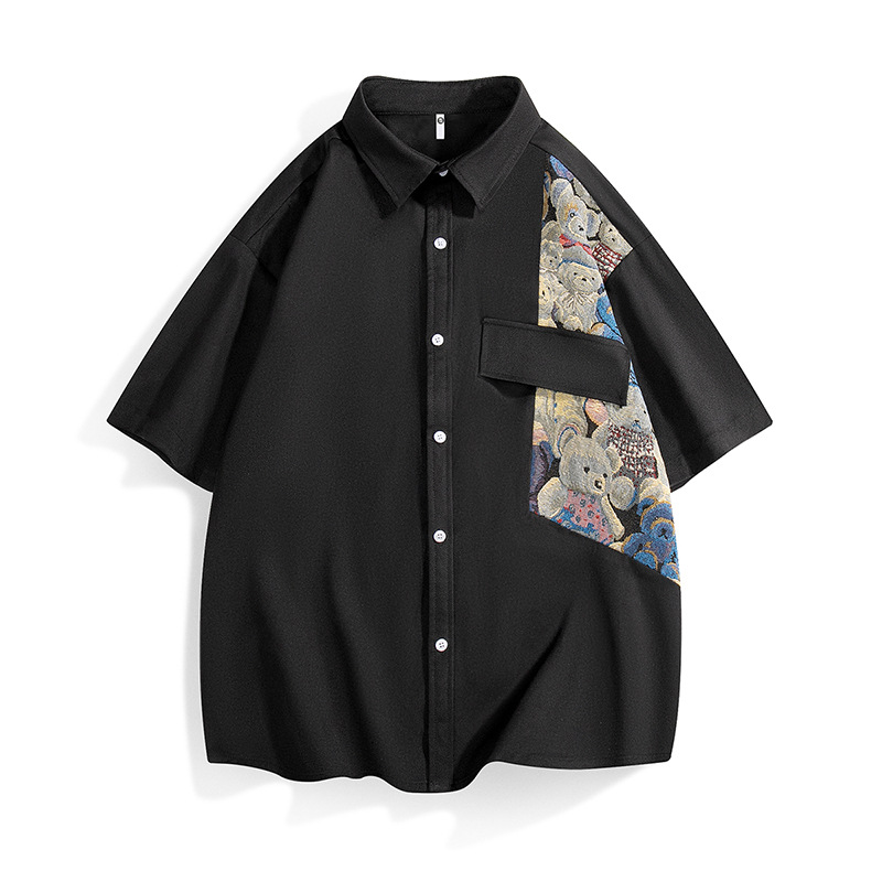 新款牧亦扬新中式国风拼接短袖衬衫男春季痞帅感休闲寸衣