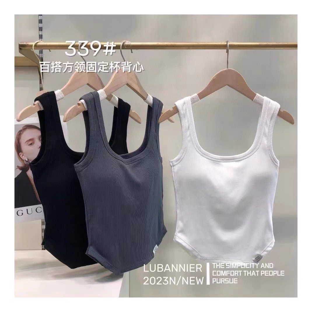 新款百搭方领固定杯螺纹棉吊带背心女复古修身显瘦内搭外穿上衣女