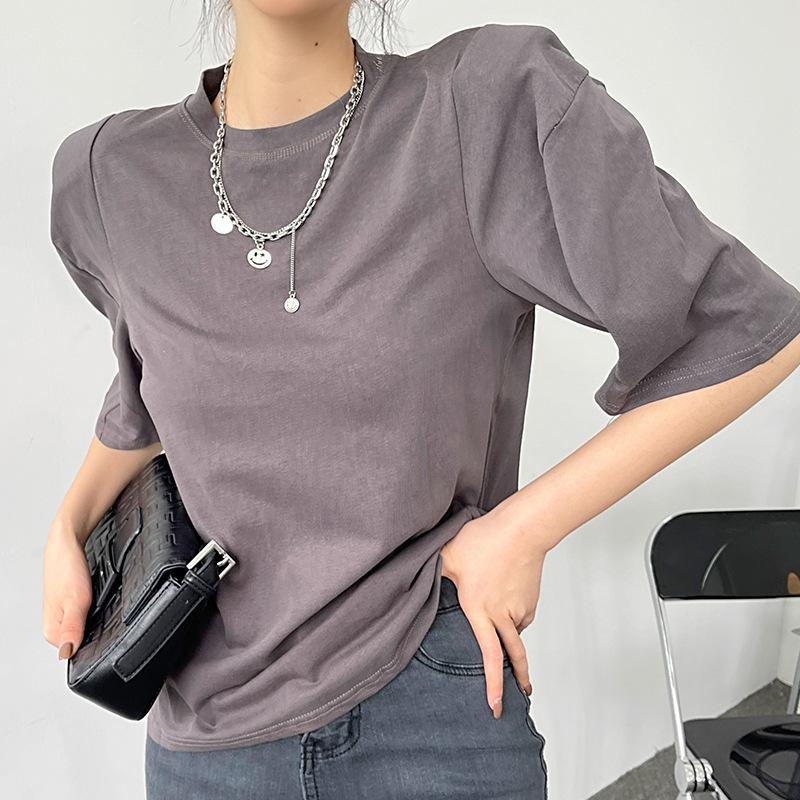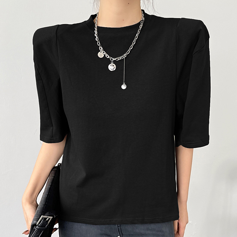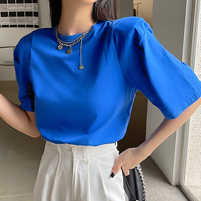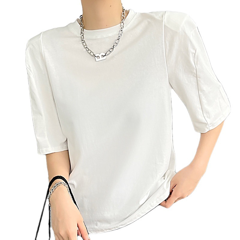 日系#纯棉白色正肩T恤女短袖宽松夏装新款洋气高级感垫肩上衣体恤