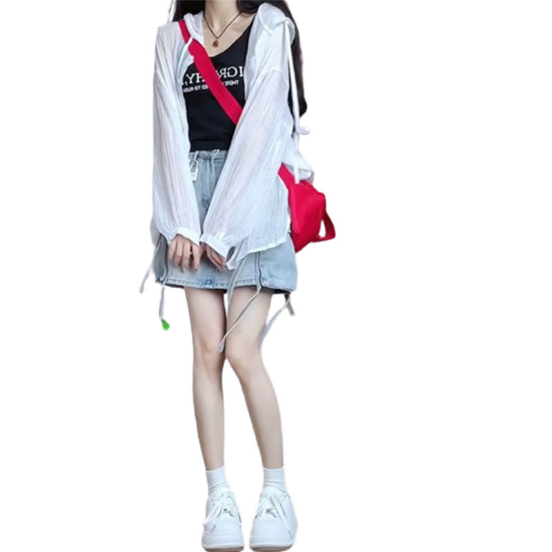 夏季港风套装女新款百搭显瘦防晒衬衫纯欲吊带牛仔短裙三件套