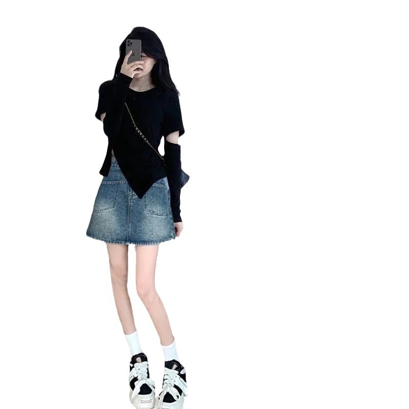夏季温柔系穿搭一整套女新款韩版显瘦上衣牛仔半身裙两件套装