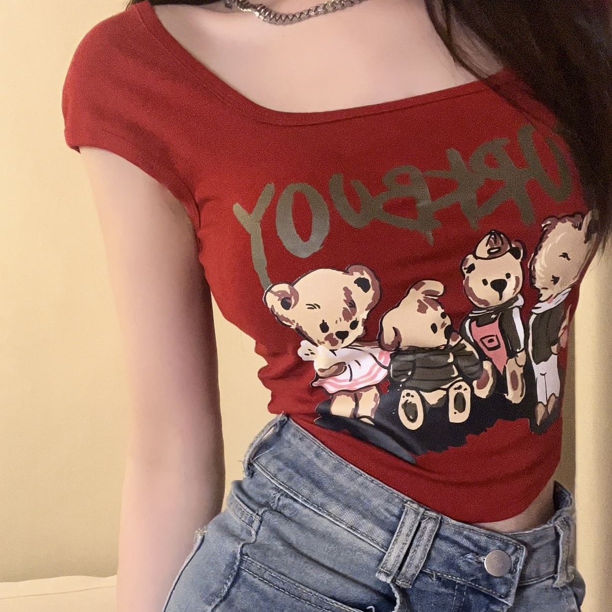 短袖女款T恤辣妹装高级感上衣内搭纯欲设计感女外穿内衣带胸垫