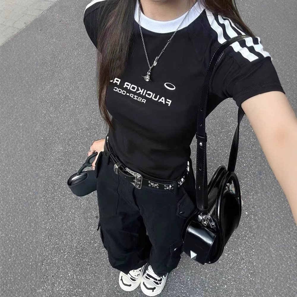 上衣宽松美式t恤不撞款正肩港味复古chic新款夏季女装