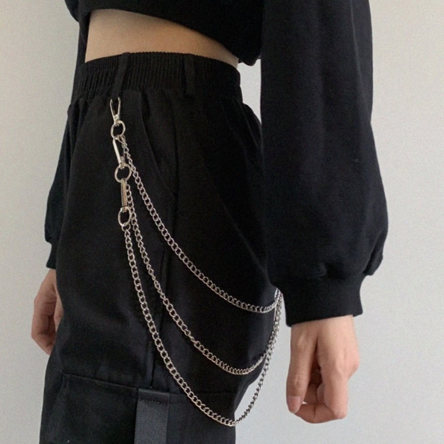 ins欧美摇滚圆圈圆珠链条嘻哈朋克金属环裤链腰链潮牛仔裤配饰潮