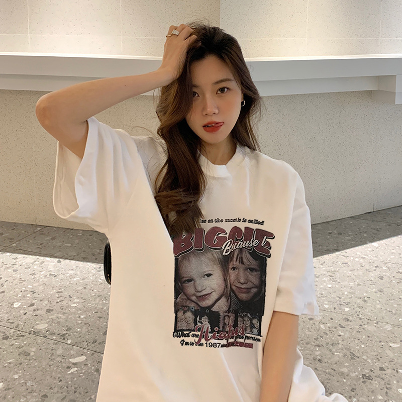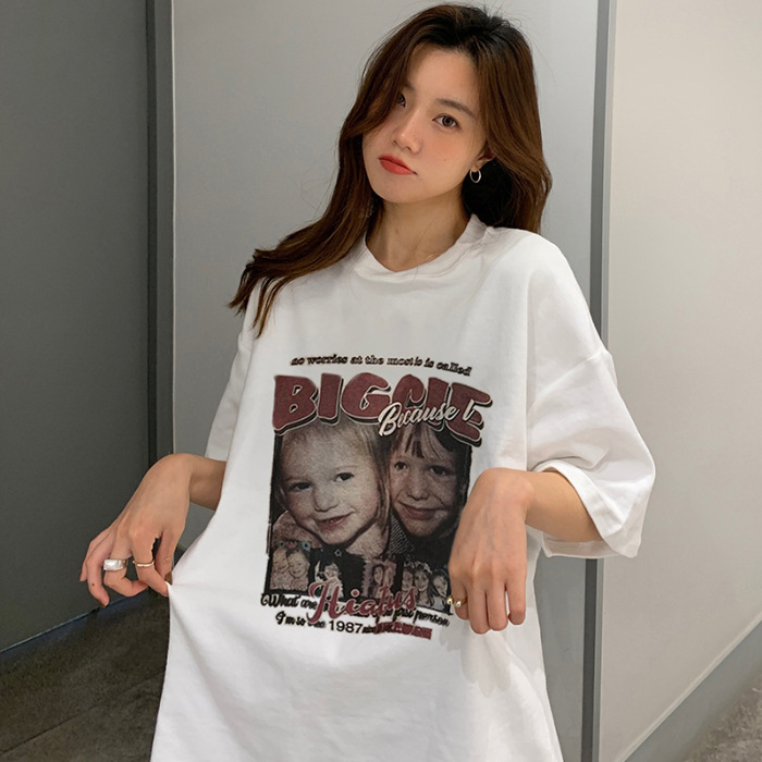 美式印花纯棉短袖T恤夏季新款宽松百搭情侣上衣欧美潮流大码女装