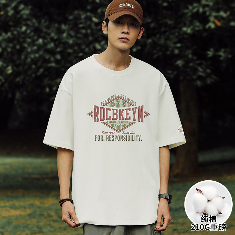 重磅短袖t恤男210G纯棉夏季新款情侣男女同款落肩上衣宽松五分袖