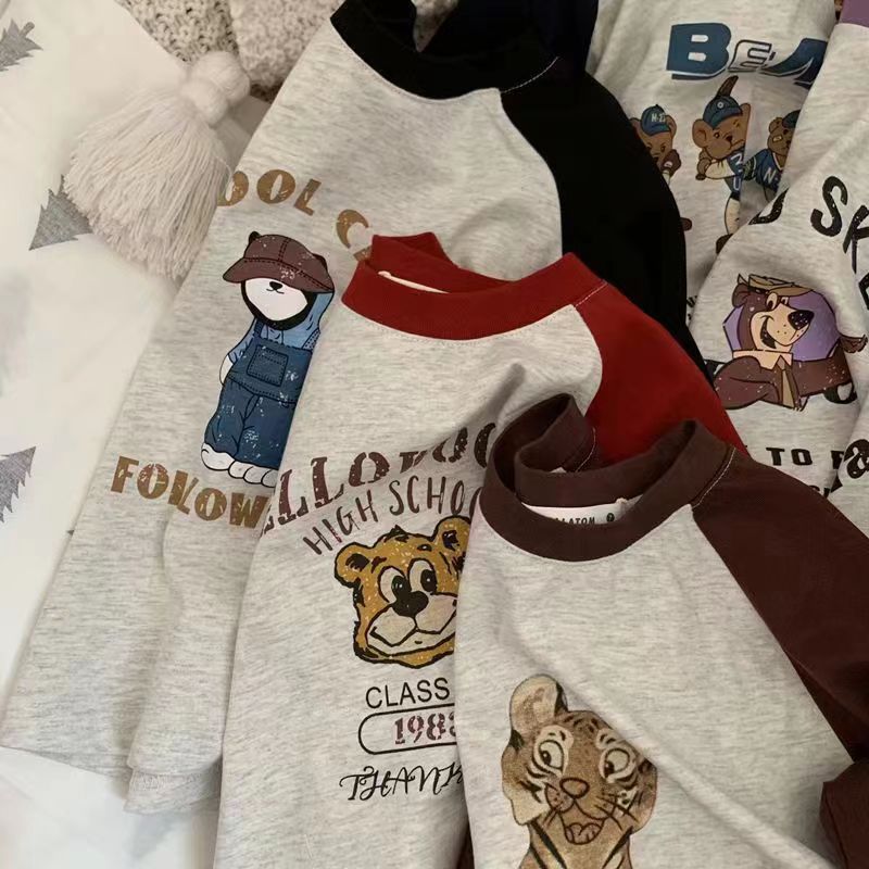 儿童长袖t恤春秋季新款童装插肩卡通印花男女宝宝上衣打底衫
