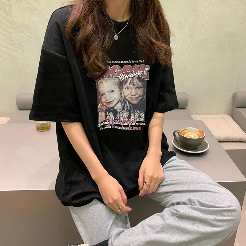 夏季新款贴布卡通字母印花休闲短袖宽松学生打底半袖CXDT863