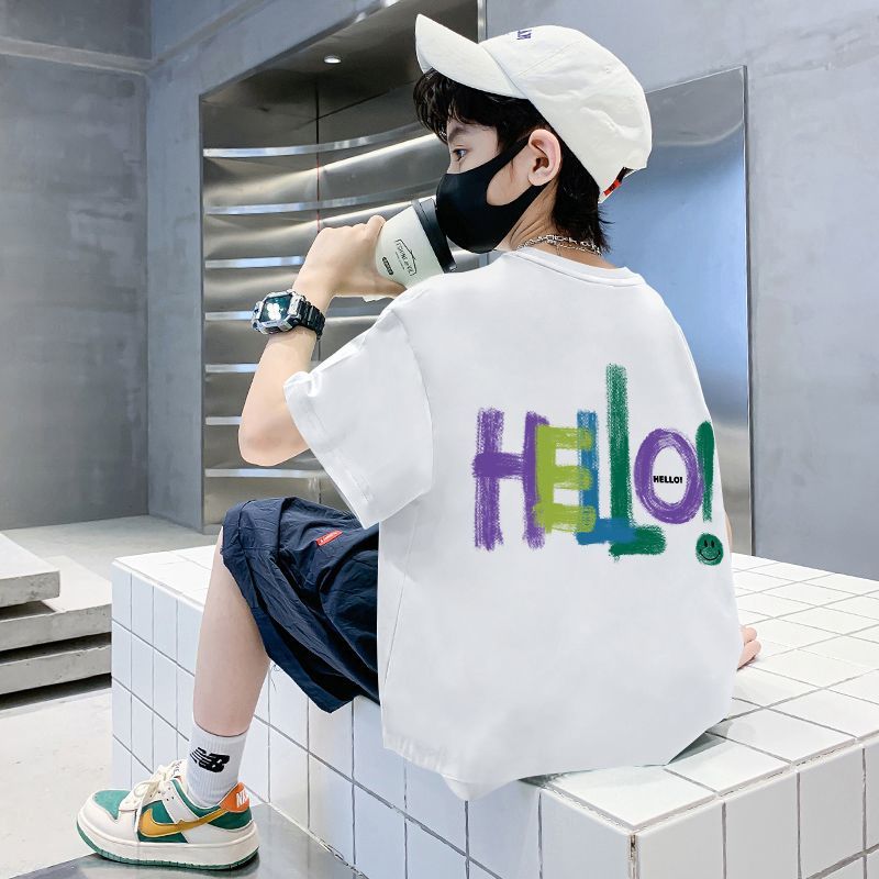 字母印花童装男童短袖t恤纯棉夏季新款儿童宝宝半袖上衣中小童潮