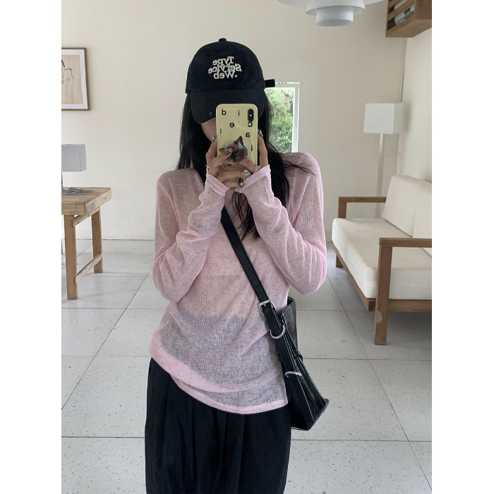 慵懒风长袖T恤女春季薄款内搭夏季防晒衫罩衫轻薄微视上衣潮