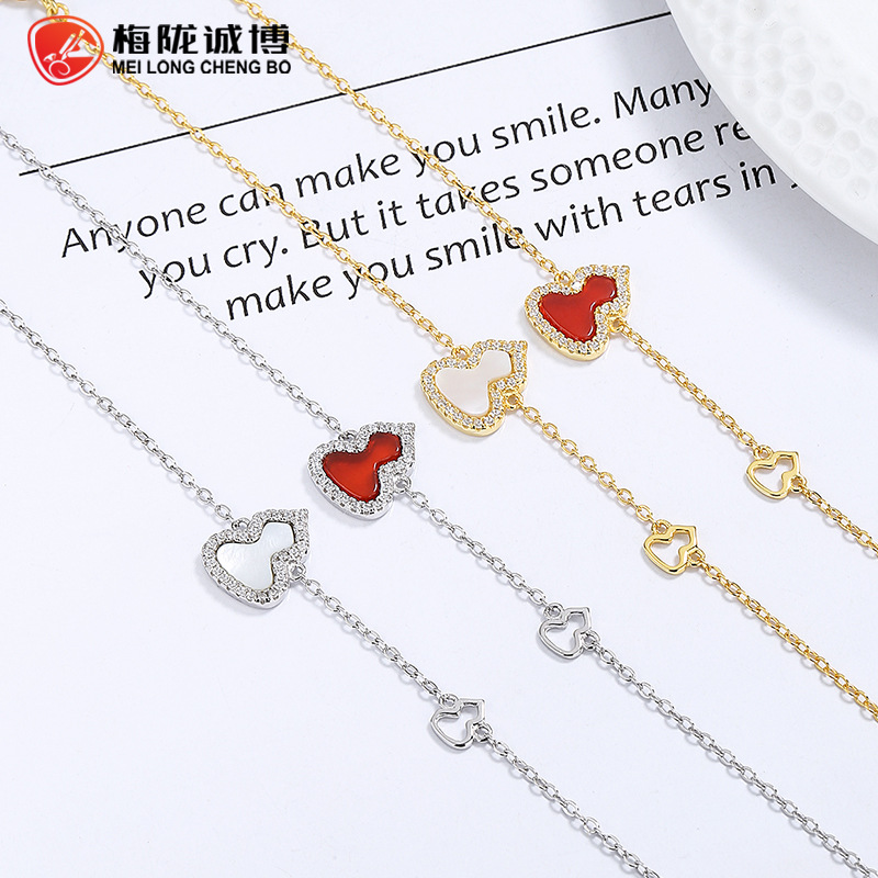 925纯银葫芦手链女新款简约风百搭白贝母红玛瑙高级感手饰品