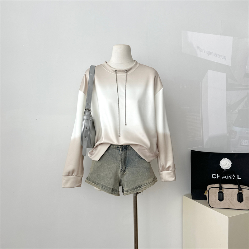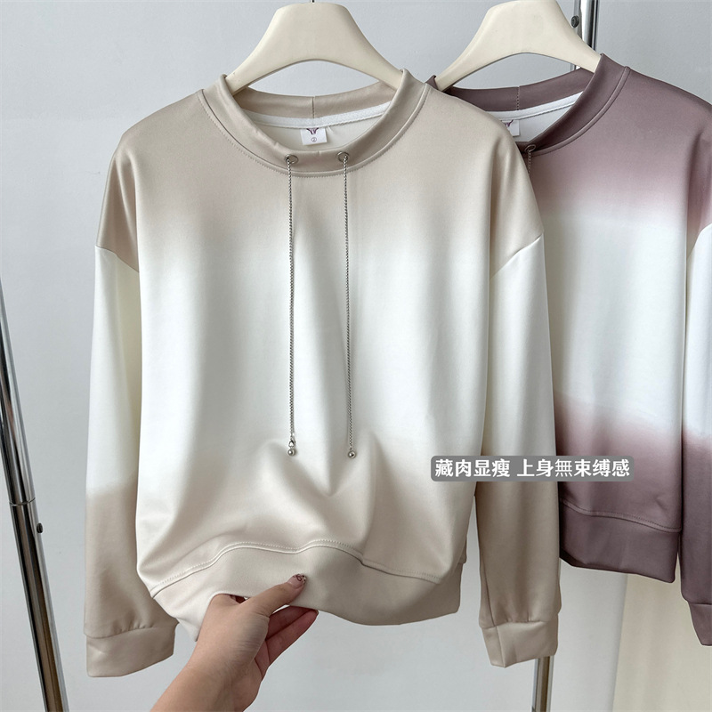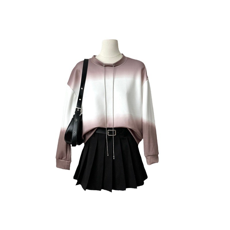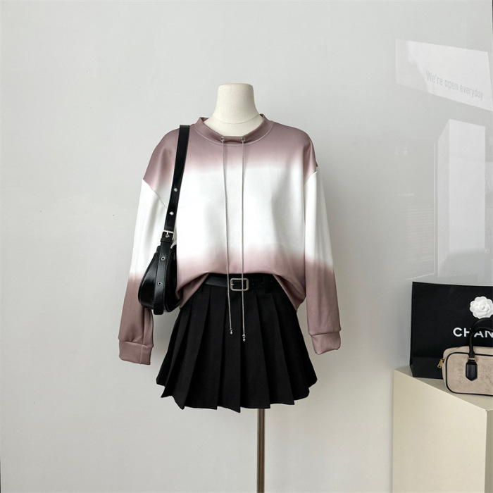 美式复古渐变色扎染卫衣女春秋冬韩版宽松显瘦打底衫别致上衣