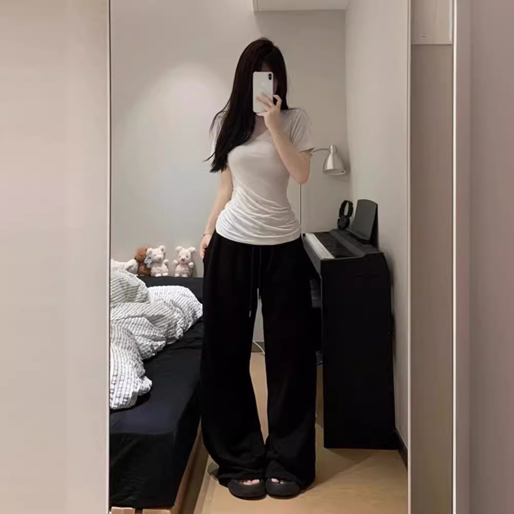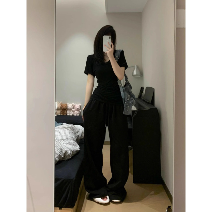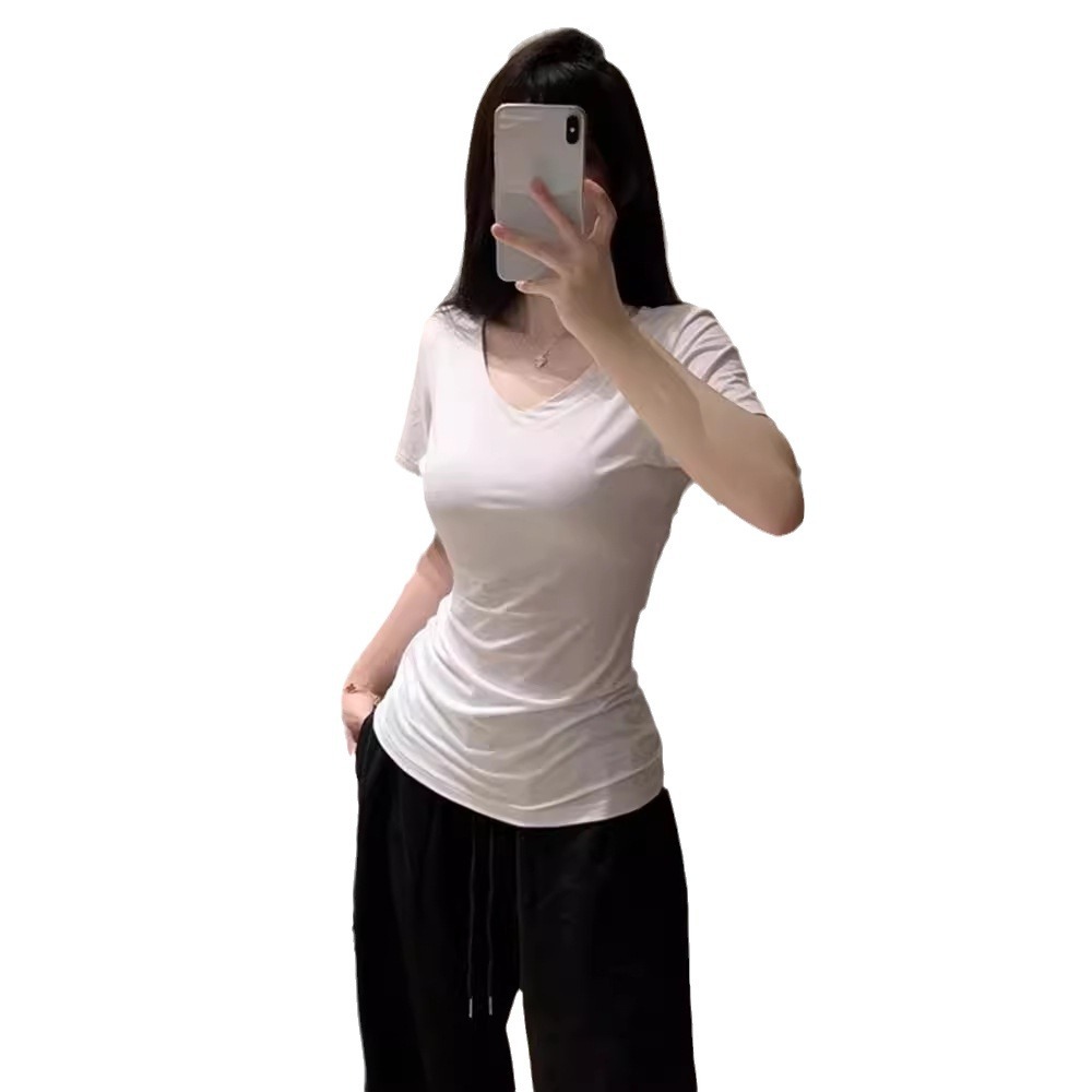 欧美纯欲白色V领正肩短袖女夏季新款辣妹简约修身显瘦百搭T恤上衣
