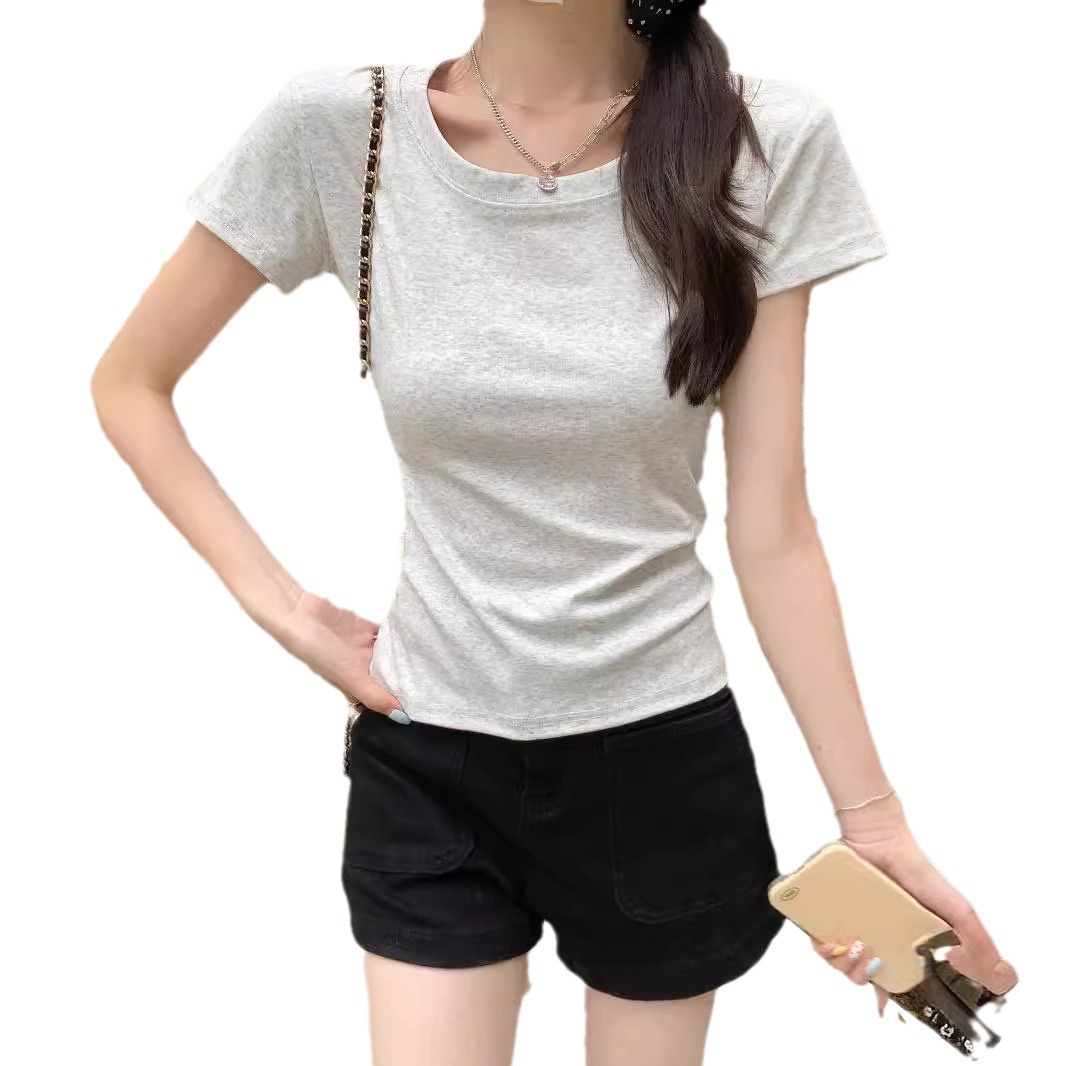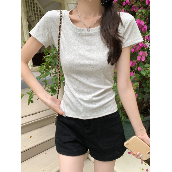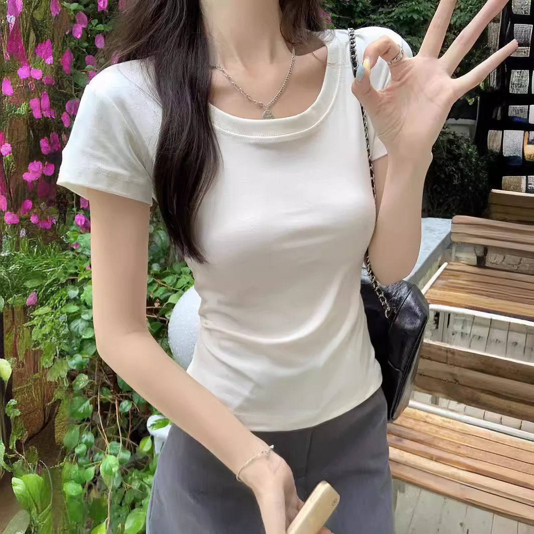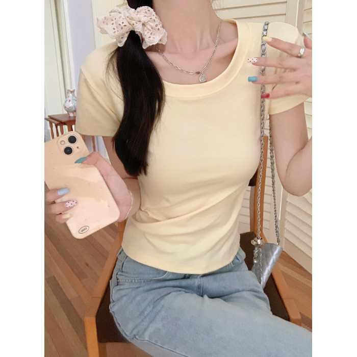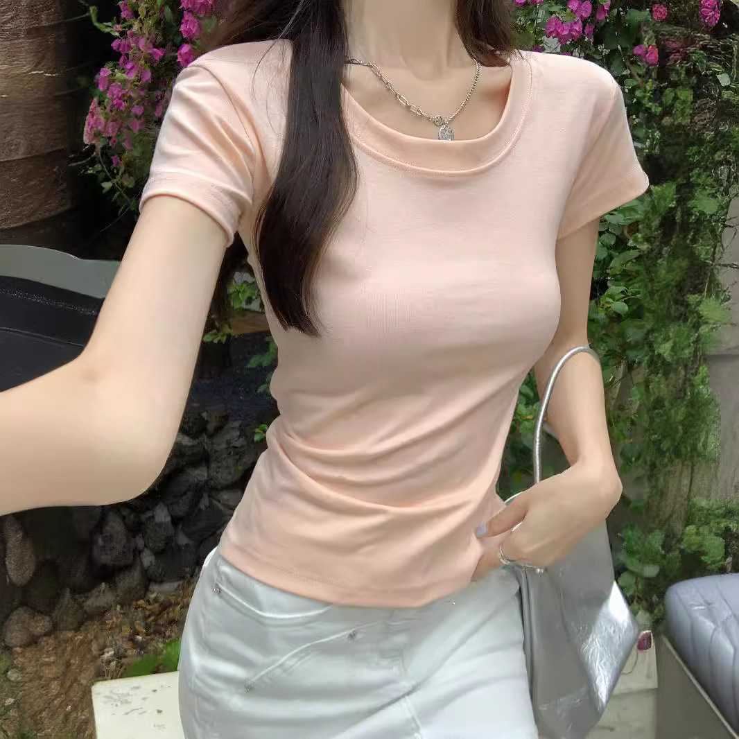 小众设计感韩系收腰修身正肩短袖T恤女辣妹纯欲性感显身材短上衣