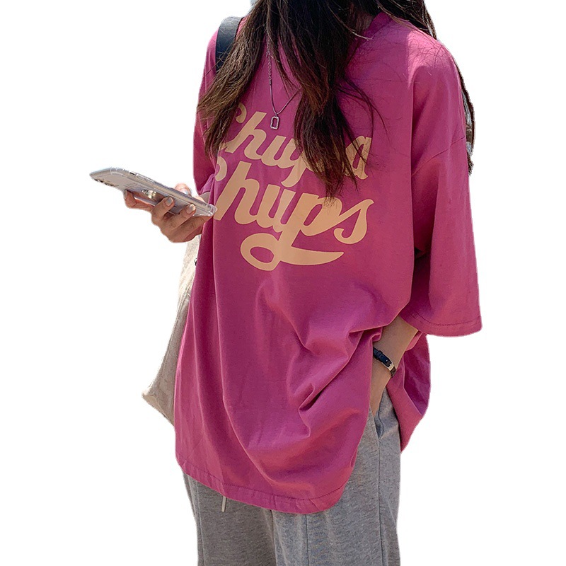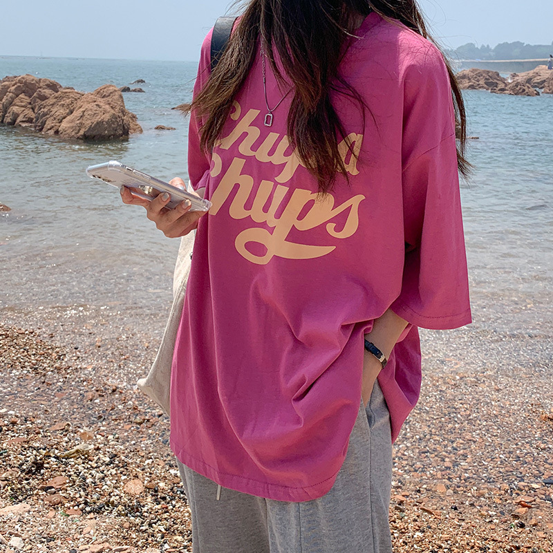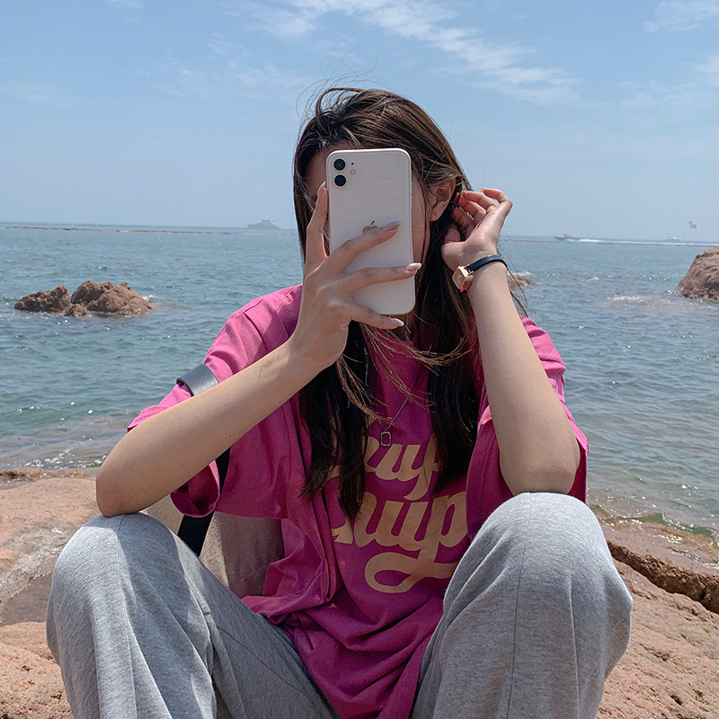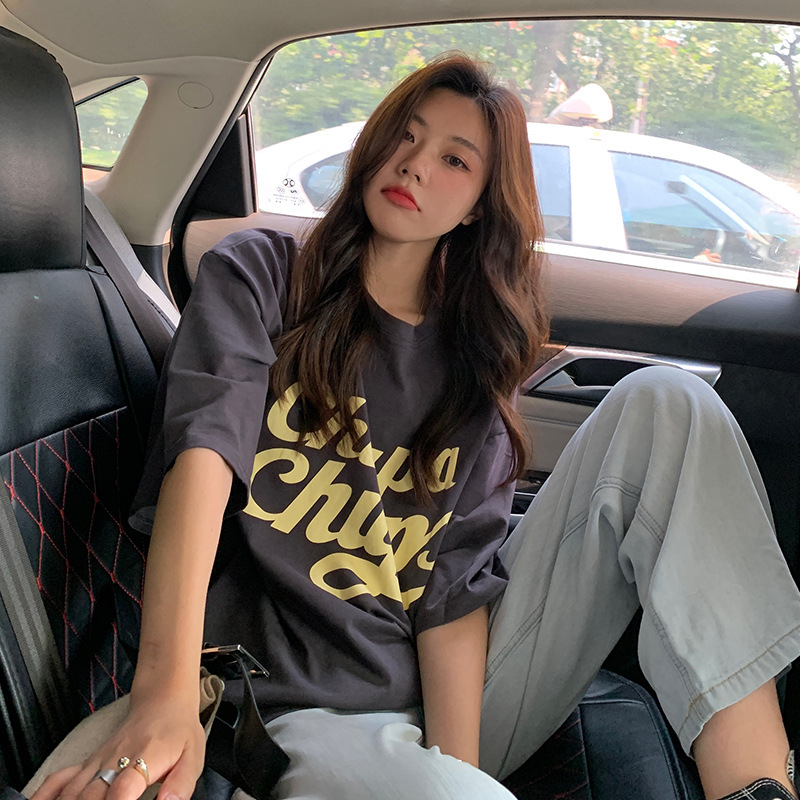 韩系风chic上衣夏季宽松大码短袖T恤学生显瘦简约半袖打底衫