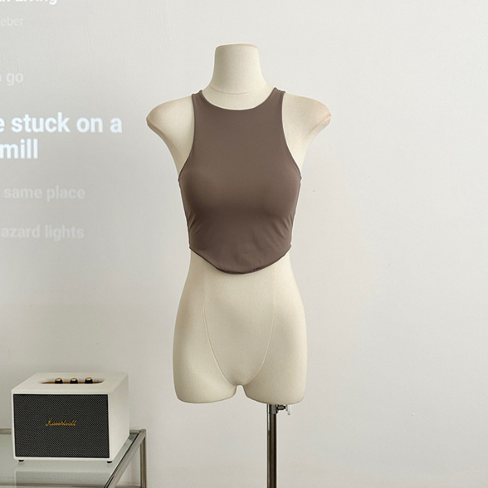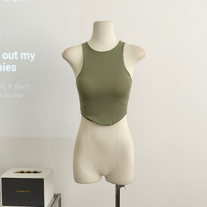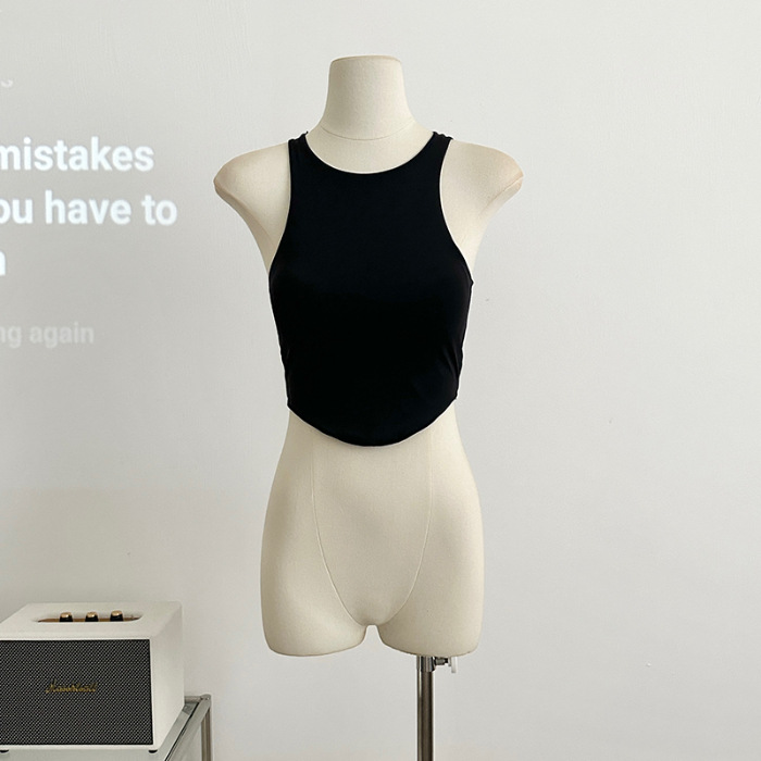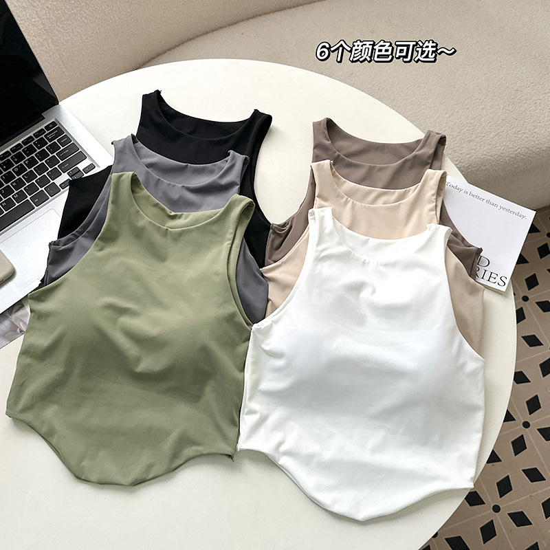 美式辣妹夏季不规则无袖背心女新款带胸垫外穿打底衫百搭上衣