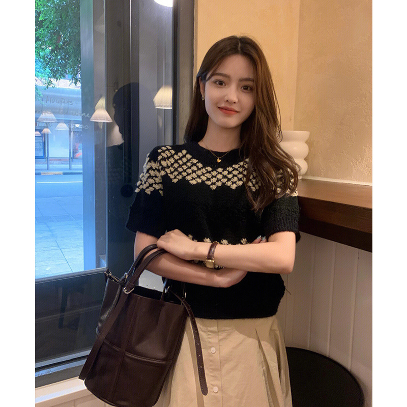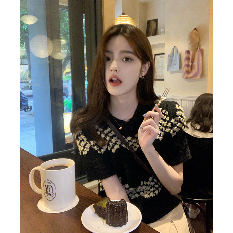 针织短袖t恤女春夏装新款设计感小众毛衣高级感超好看上衣