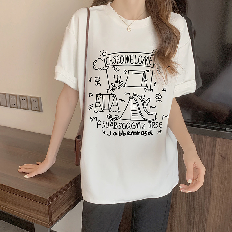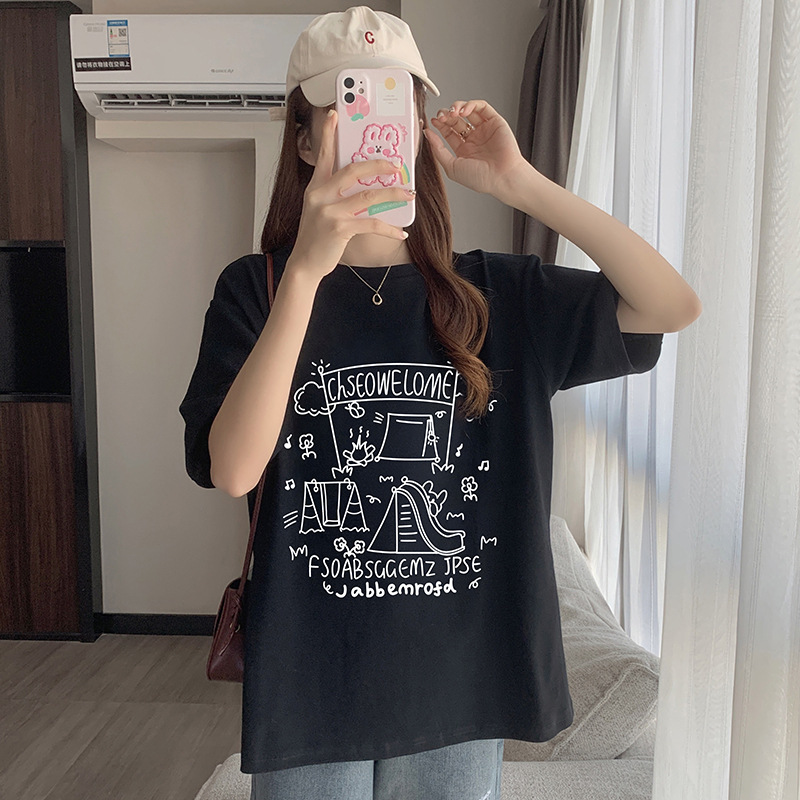 夏季新款刺绣短袖t恤女网红同款衣服女韩版百搭中长款上衣女