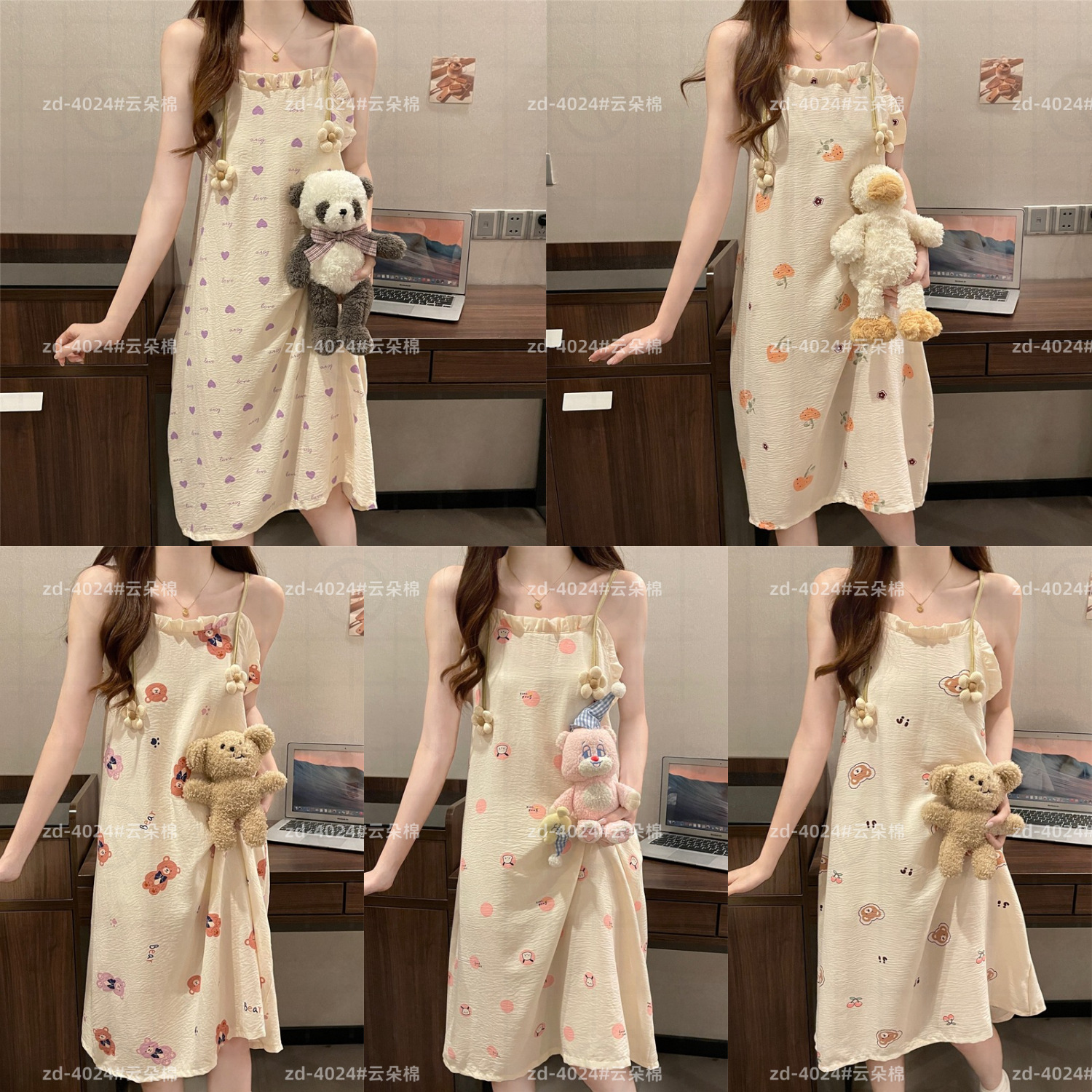 睡裙女夏季小花朵吊带云朵棉皱布甜美公主风夏天裙子睡衣女连衣裙