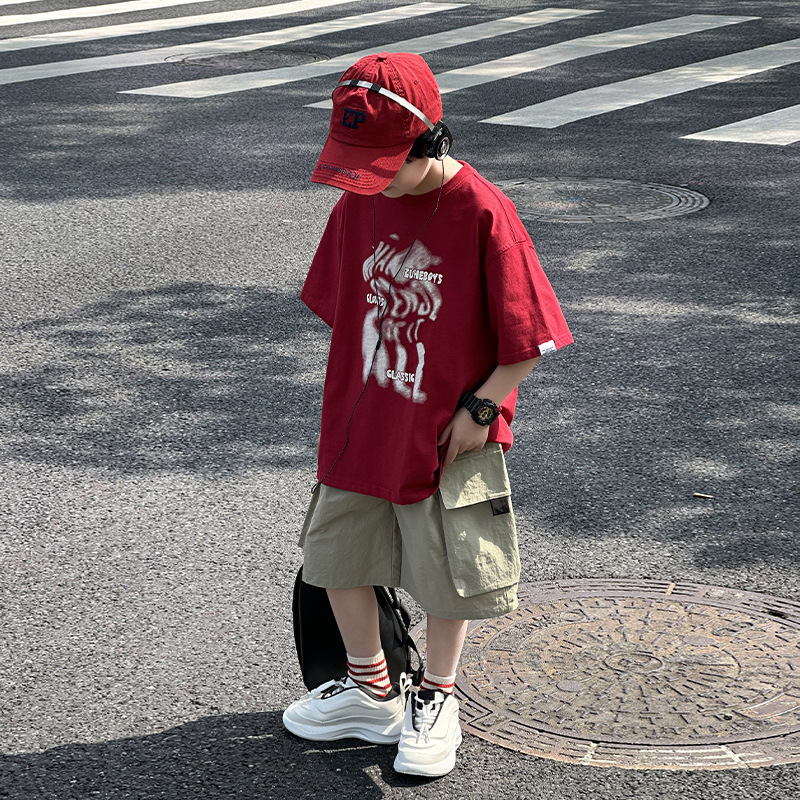 男童短袖套装夏装新款潮夏季童装洋气酷帅T恤工装短裤两件套