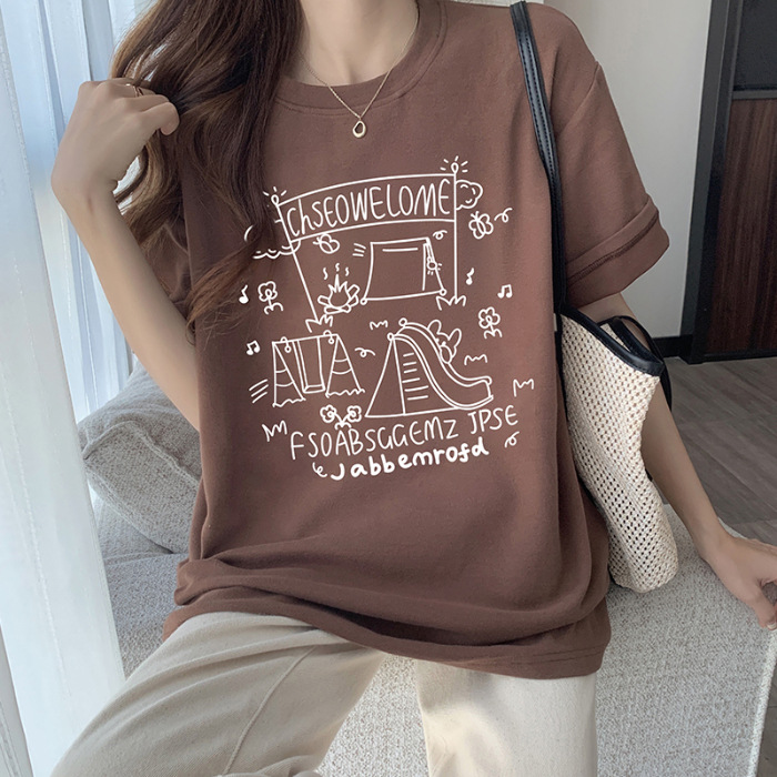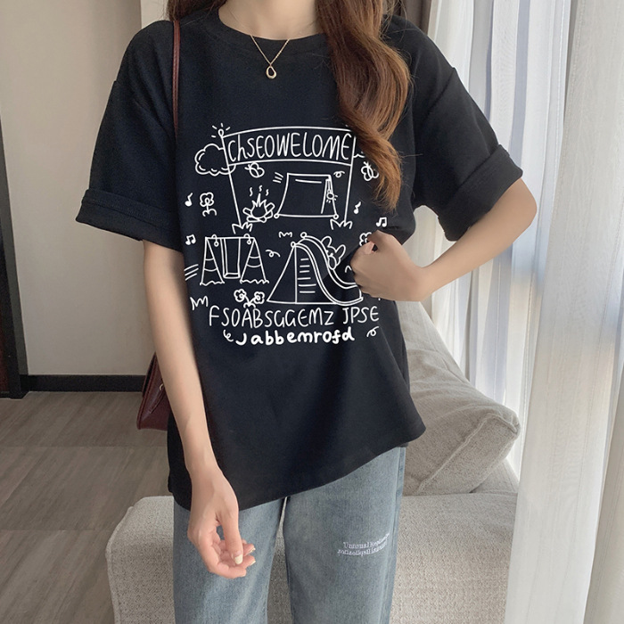 短袖T恤夏季女装新款纯棉宽松百搭体恤设计感小众半袖上衣ins