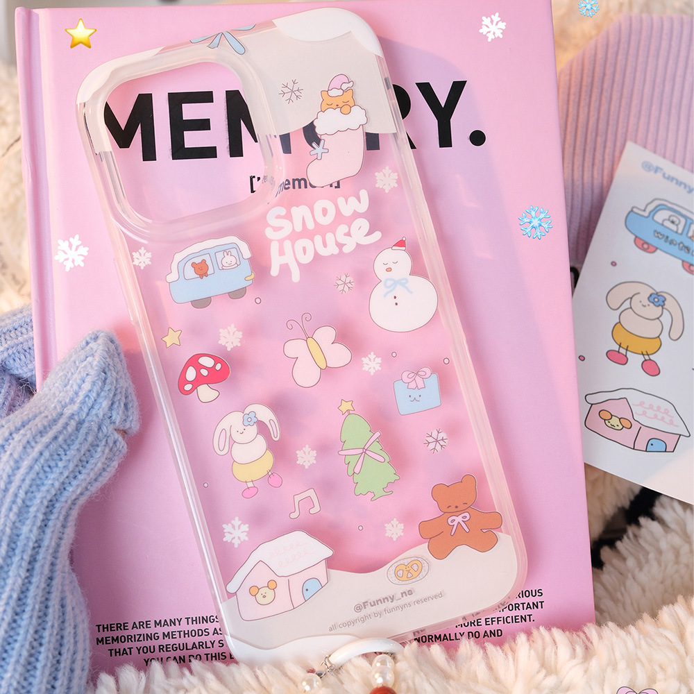 透明雪人小屋蝴蝶结iPhone15ProMax手机壳12软壳13Pro苹果14保护