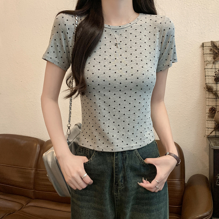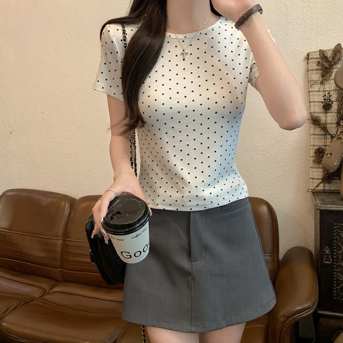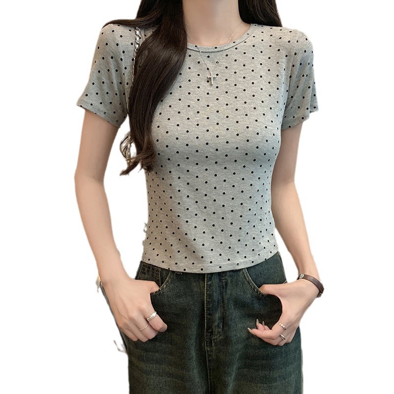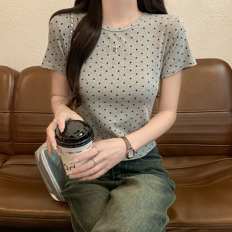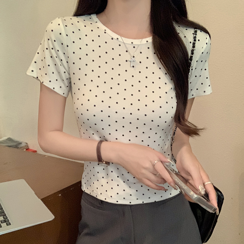 别致波点正肩圆领短袖T恤女夏季新款小众修身显瘦短款上衣ins