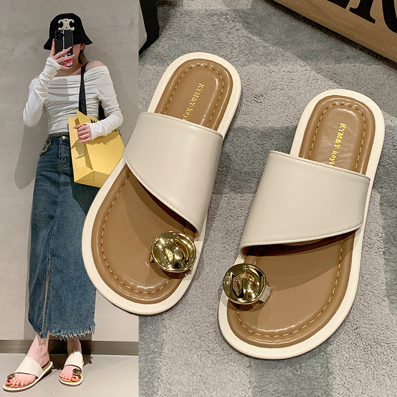 圆头套趾一脚蹬金属装饰软底软面厂家直供春夏新款时装女拖鞋