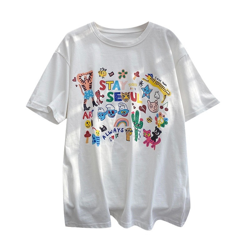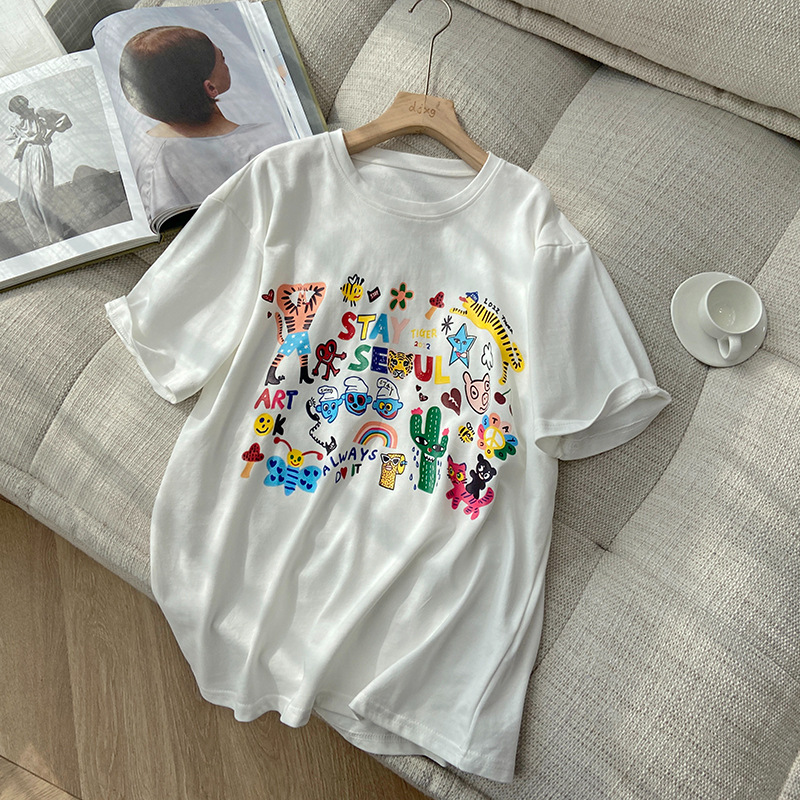 卡通趣味纯棉短袖T恤女韩版新款宽松显瘦oversize慵懒上衣夏