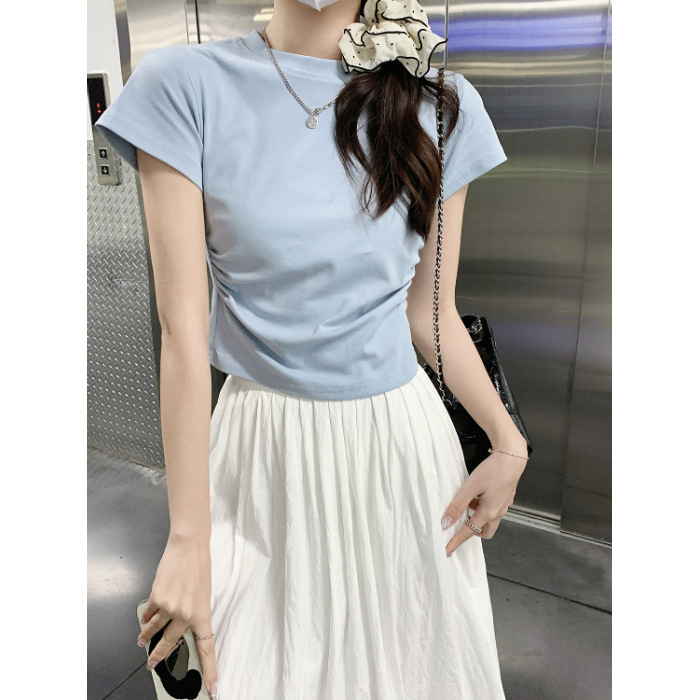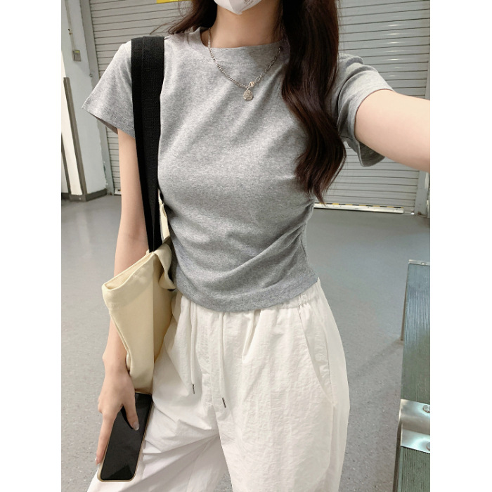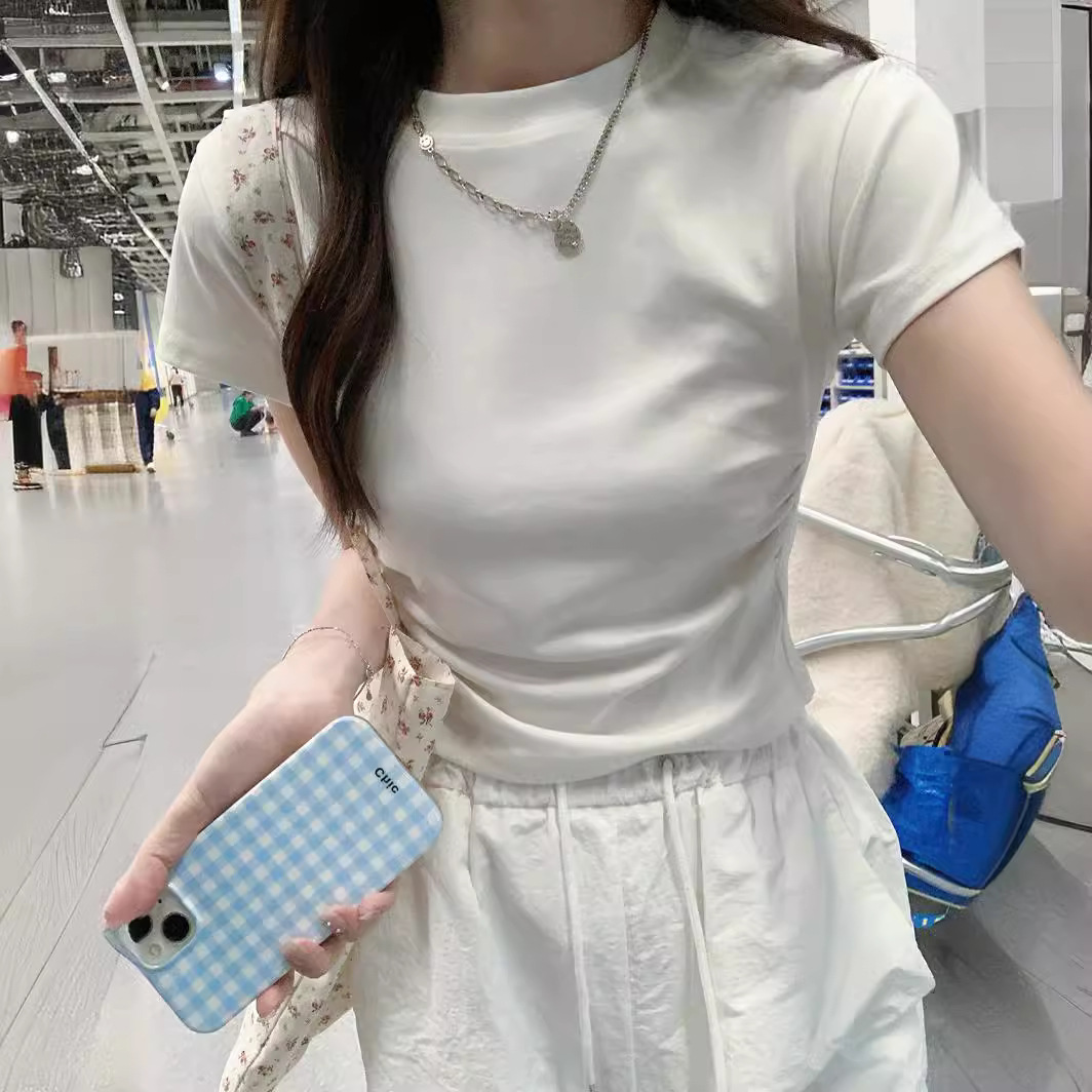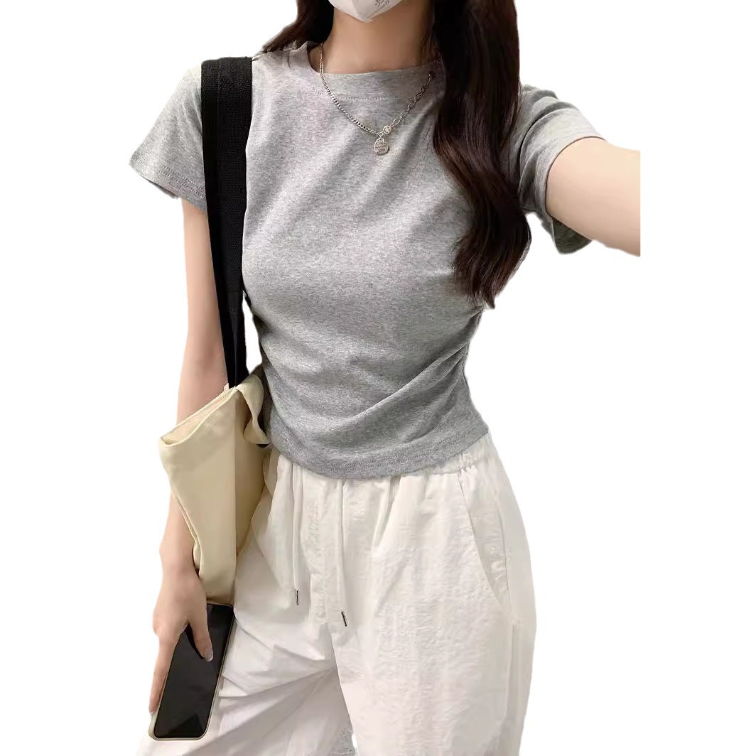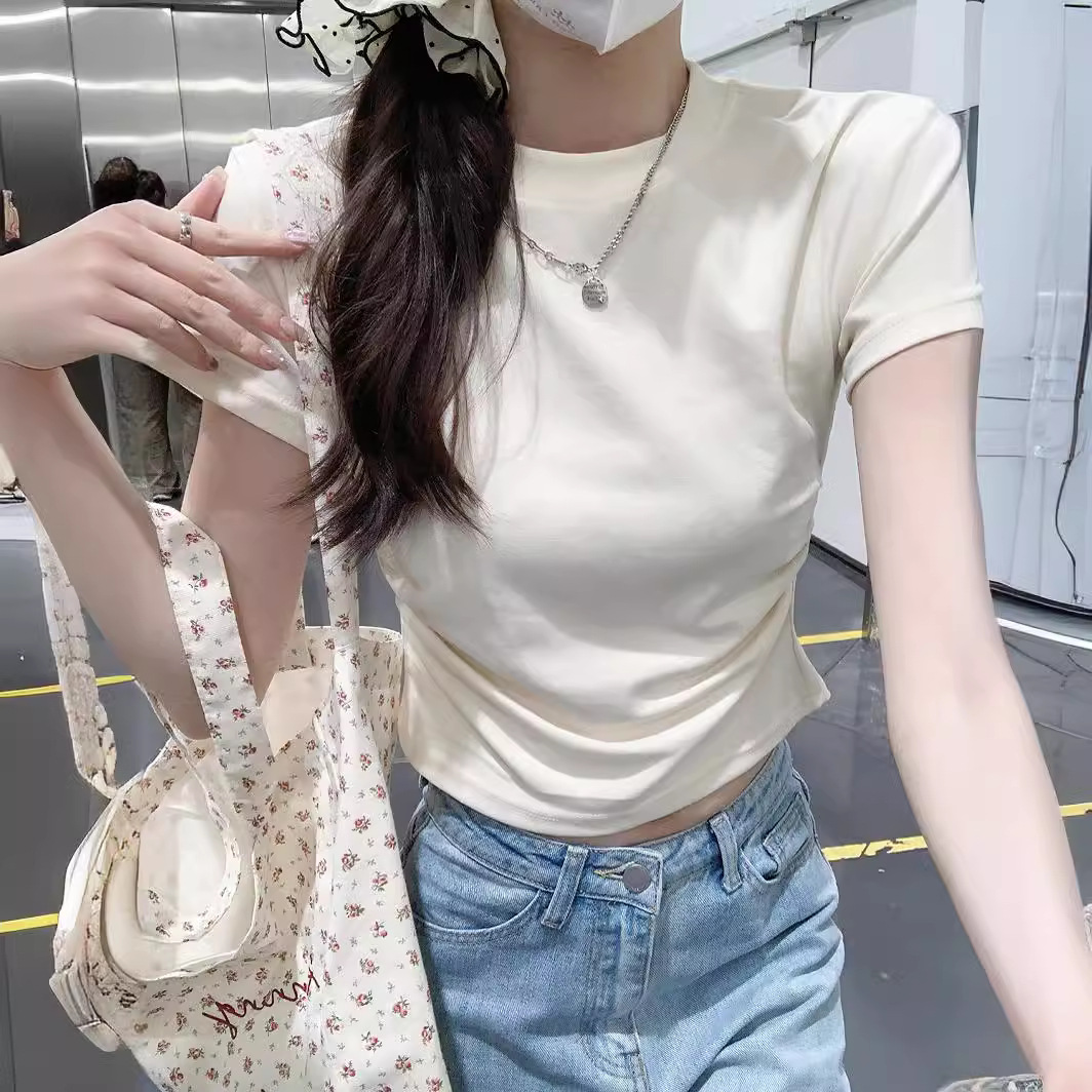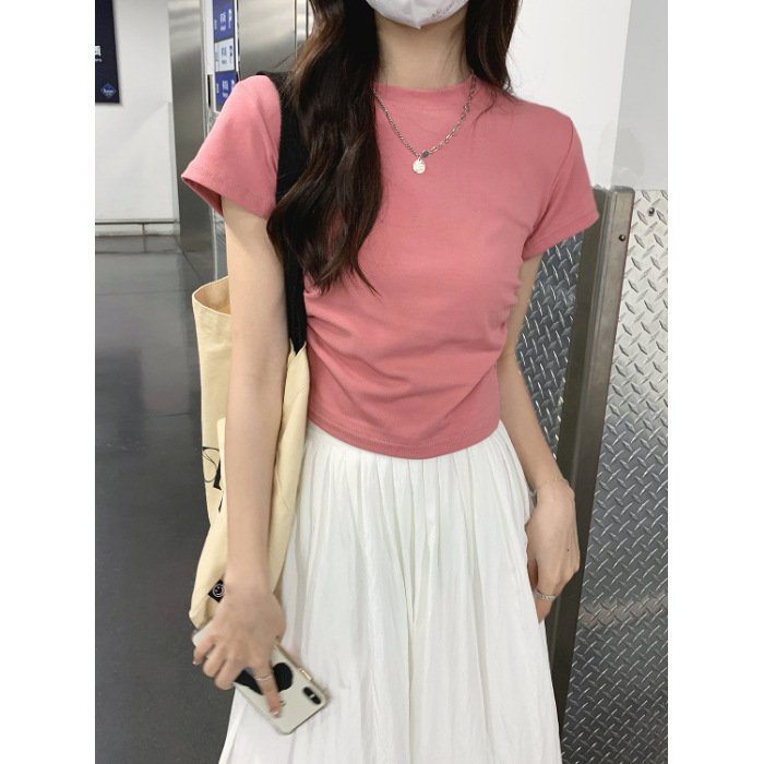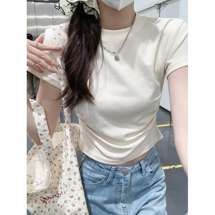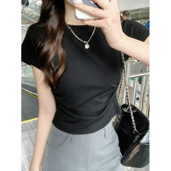 美式短袖正肩内搭T恤女春夏修身显瘦辣妹紧身上衣百搭纯色打底衫