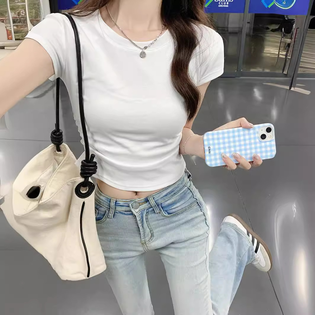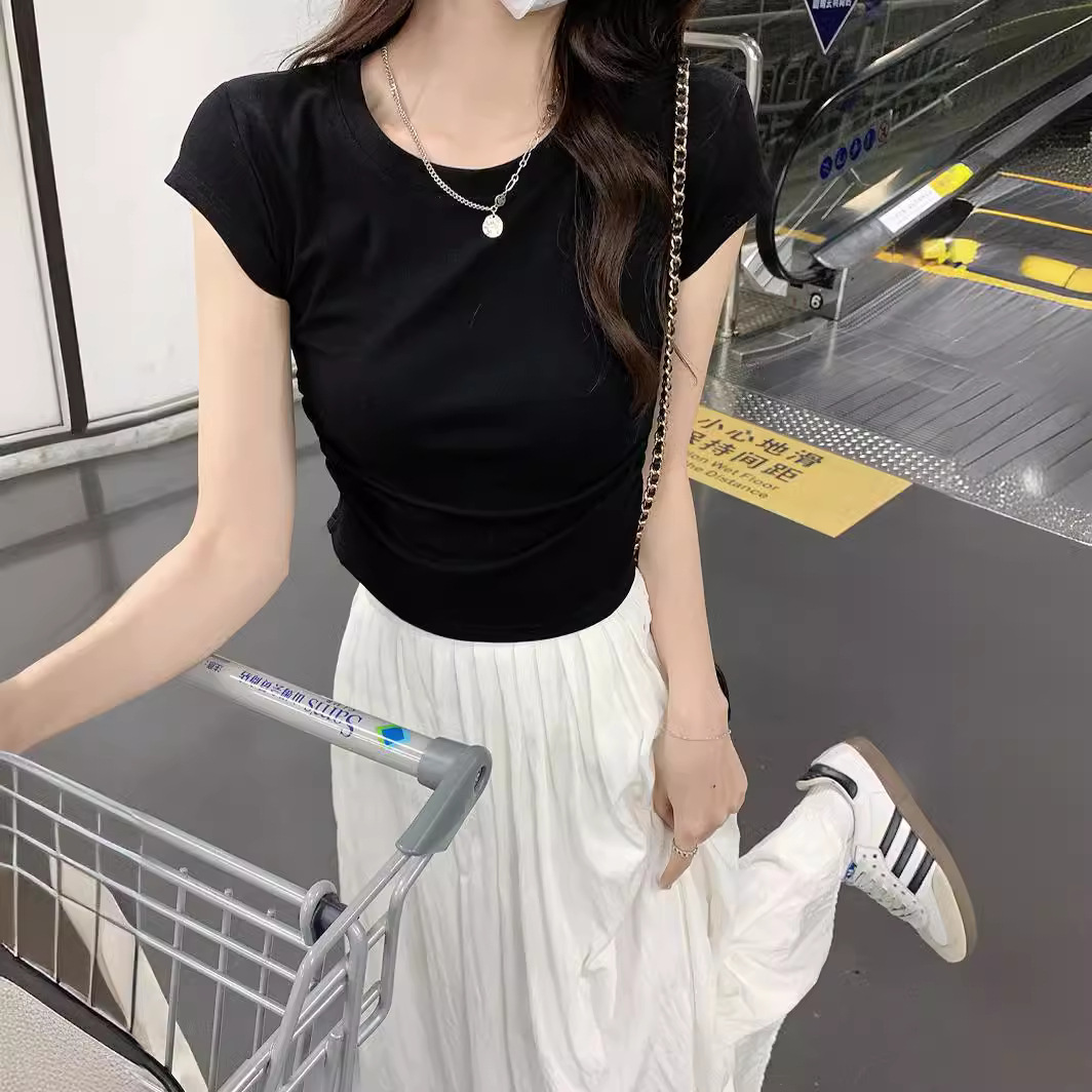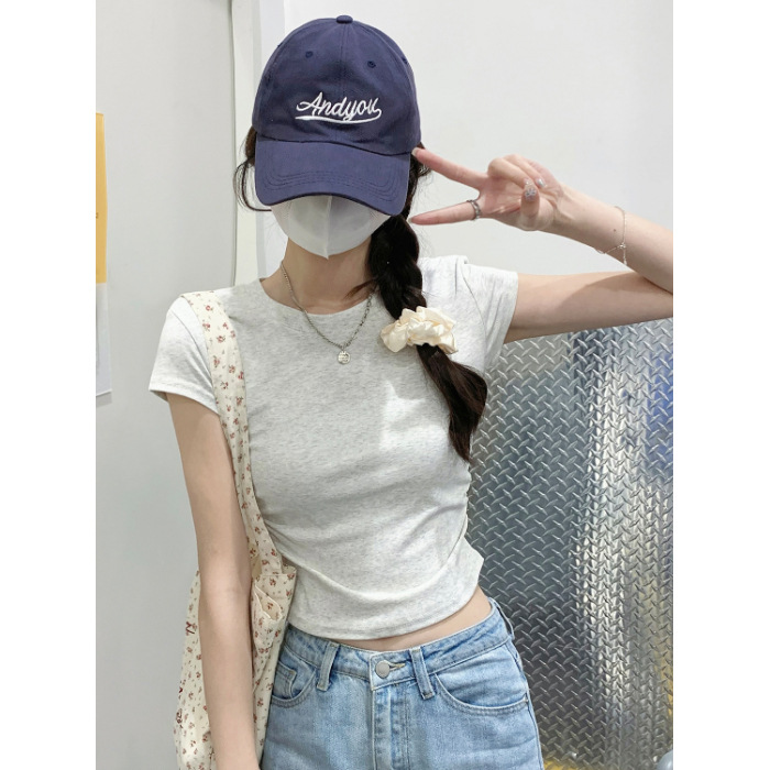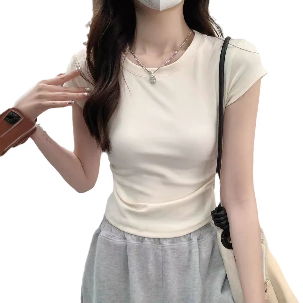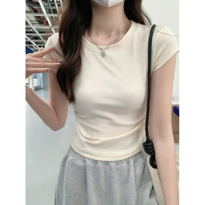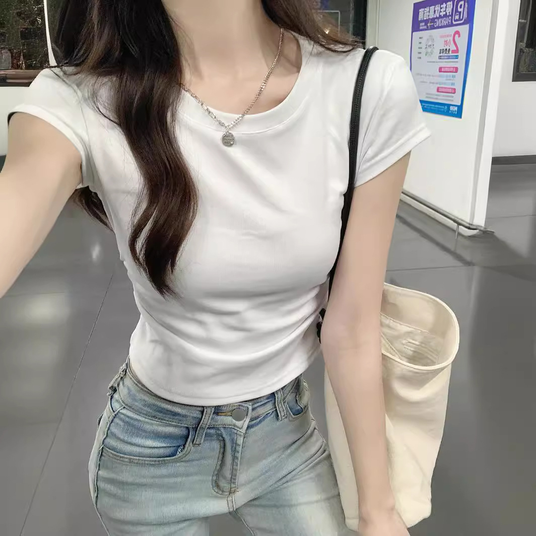 纯色短袖打底衫内搭T恤女装春夏季新款显瘦修身辣妹短款正肩上衣