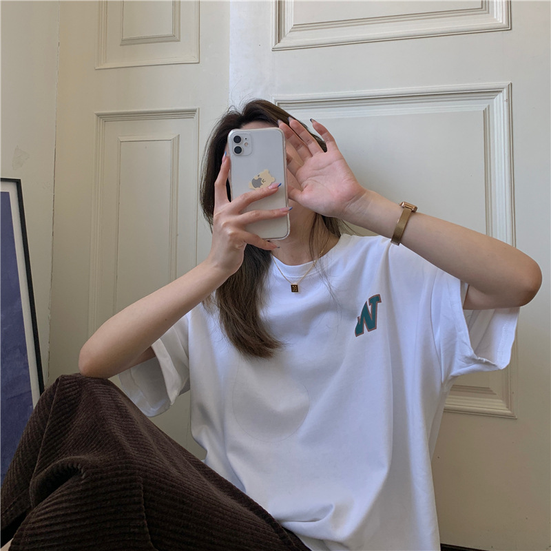 夏季韩版新款胖MM宽松大码oversize字母印花中长款短袖T恤女