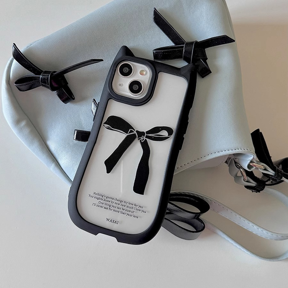 韩国ins小众猫耳朵黑色蝴蝶结适用iphone15苹果14手机壳13promax