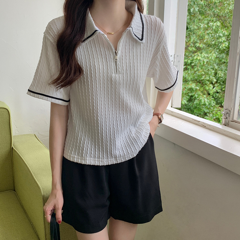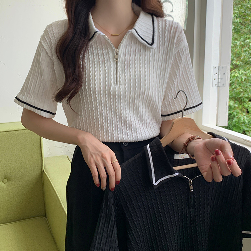 翻领Polo衫短袖T恤女夏季新款宽松ins学院风学生百搭闺蜜装上衣潮