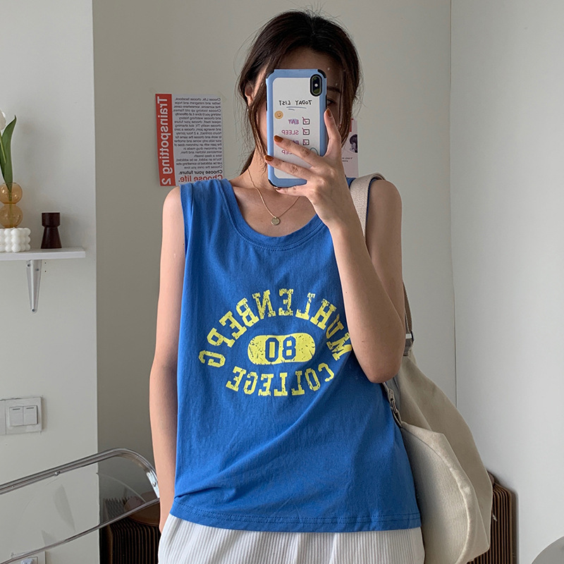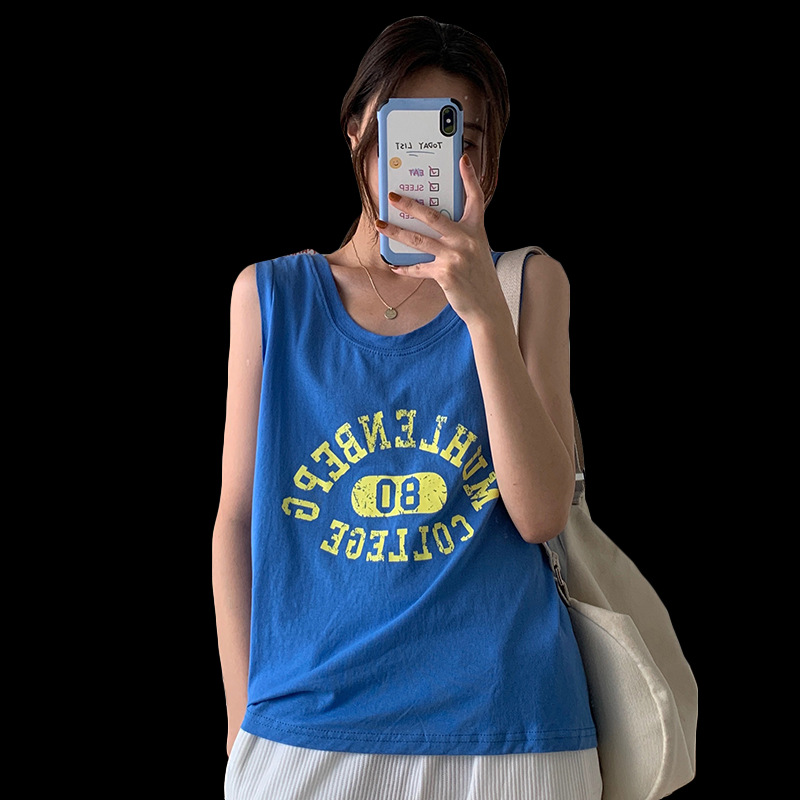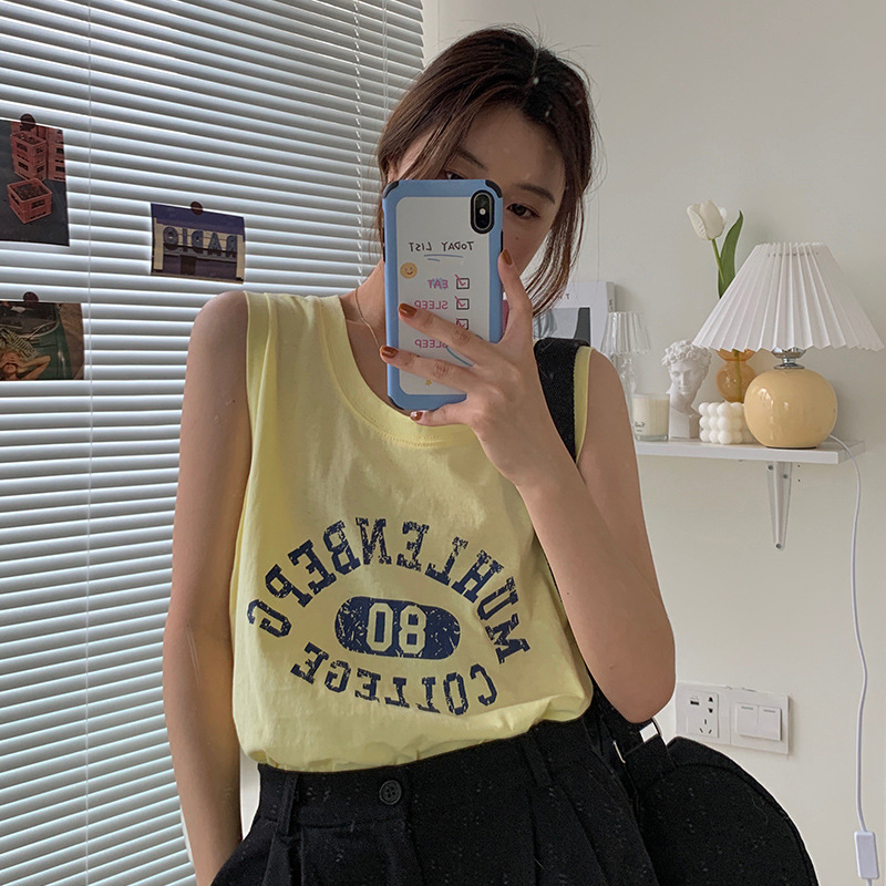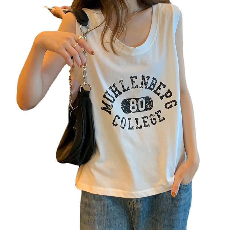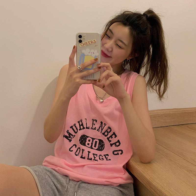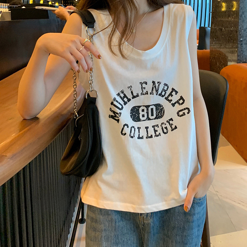 印花灰色无袖T恤女夏季年新款宽松百搭休闲运动背心上衣ins潮