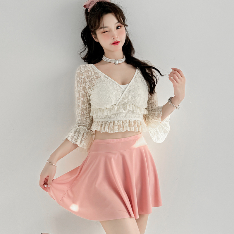 【蕾丝女神】新款仙气泳衣女分体两件套保守显瘦遮肚学生泳装