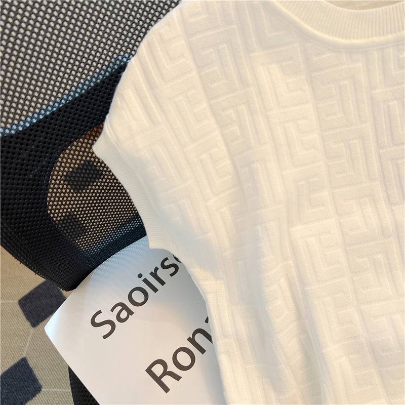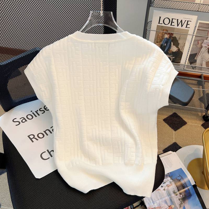 小香风薄款针织衫短袖女夏季高级感轻奢法式别致无袖冰丝恤上衣