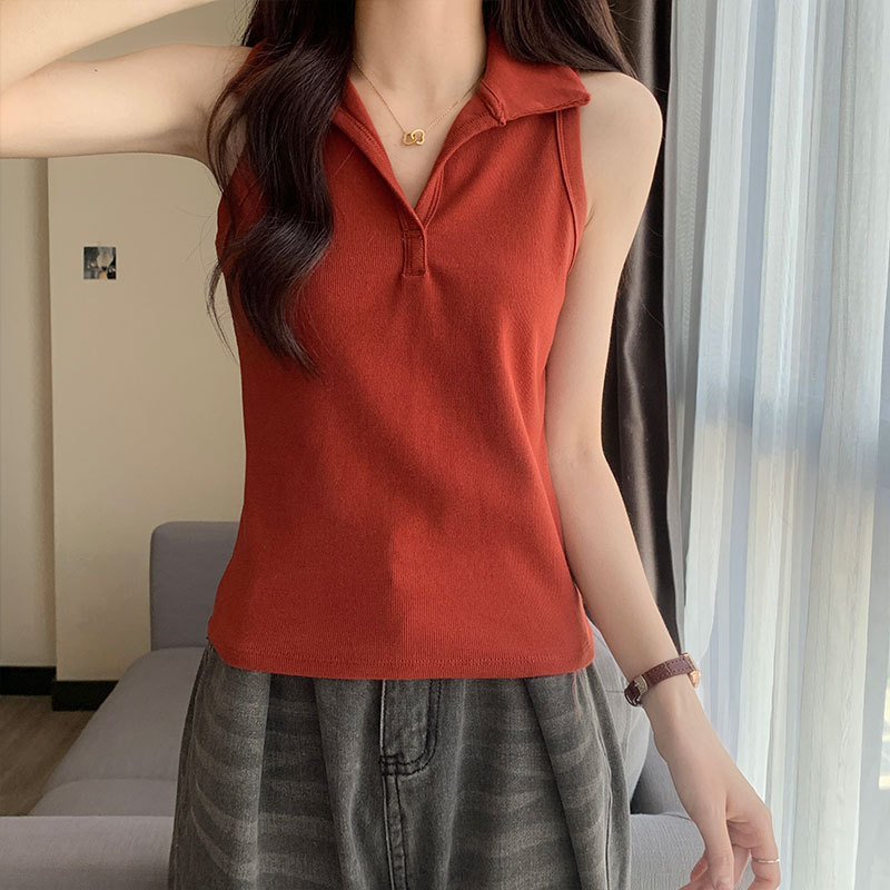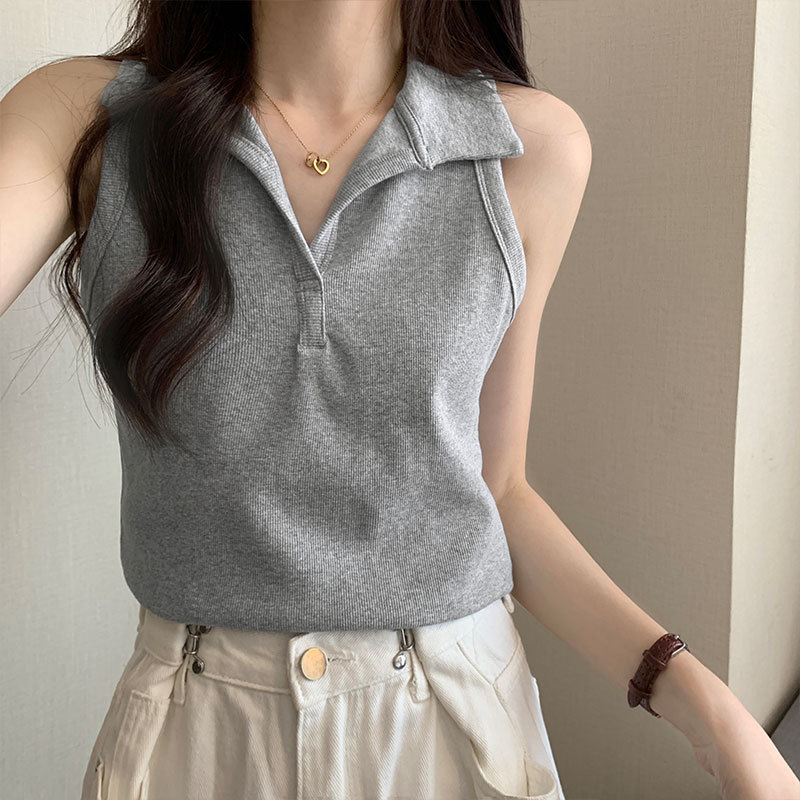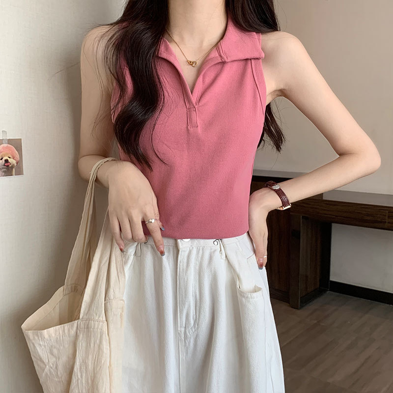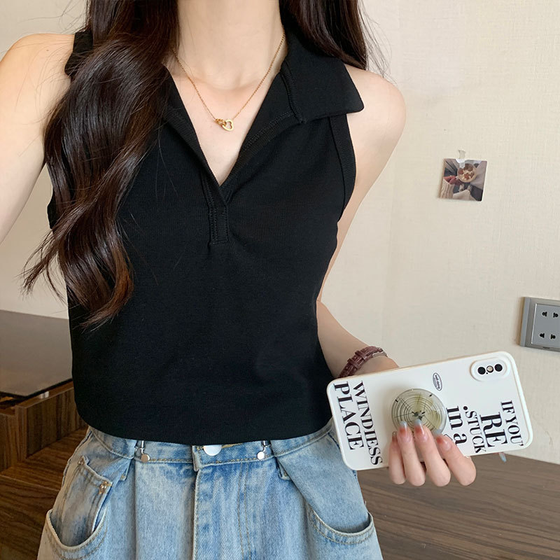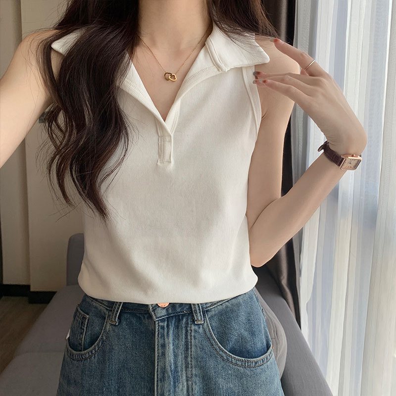 Polo领白色背心女西装内搭夏季爆款高级感减龄修身韩版打底衫上衣