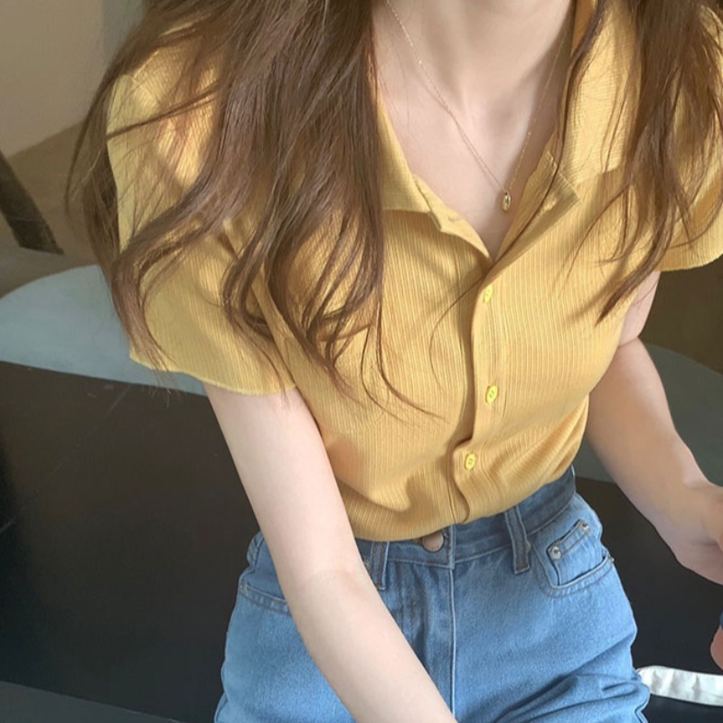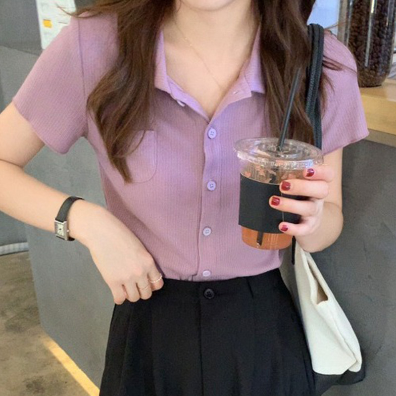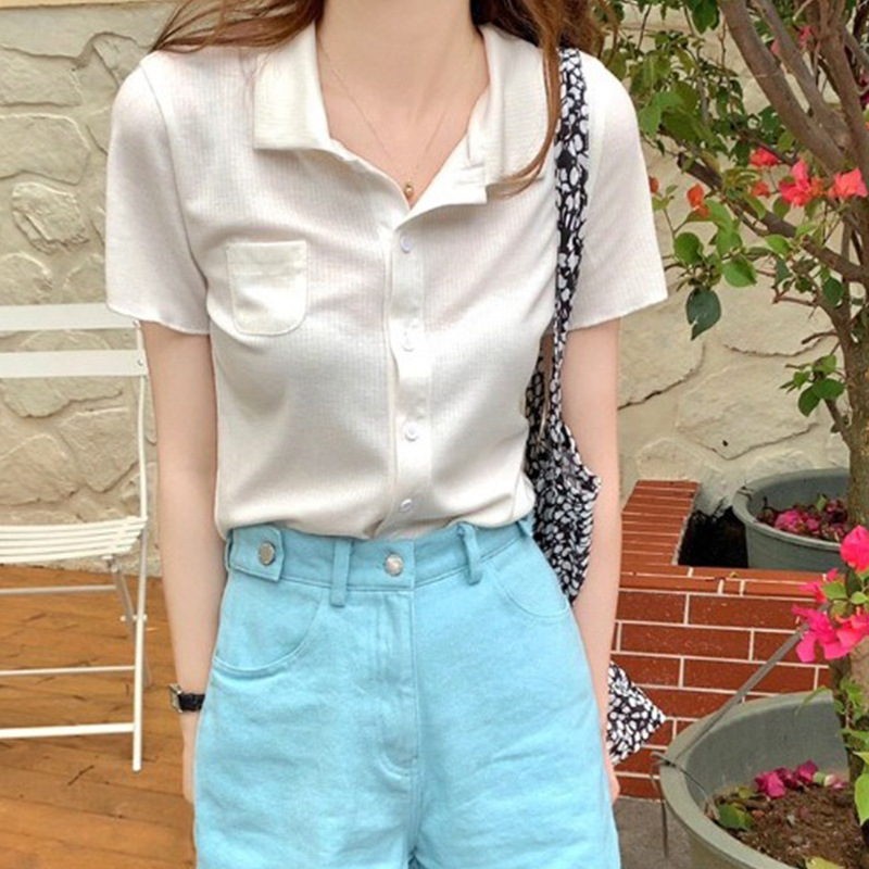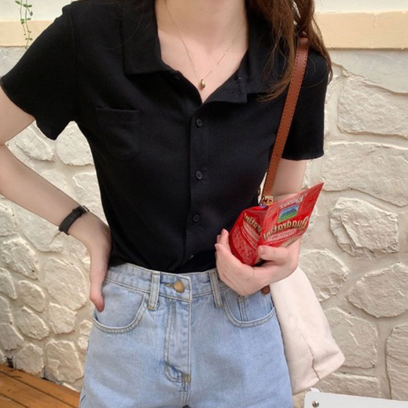 别致上衣新款夏衫polo正短袖t修身肩身体高级女领独特小