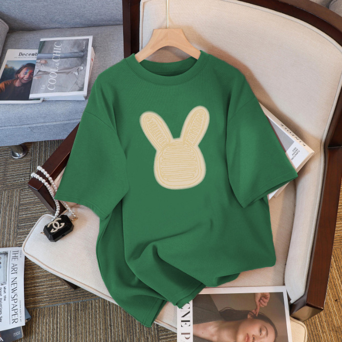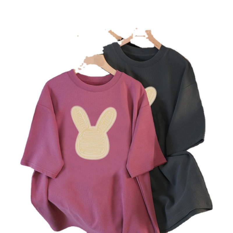 ins风白色短袖T恤女装夏季新款韩版卡通印花纯棉宽松百搭上衣