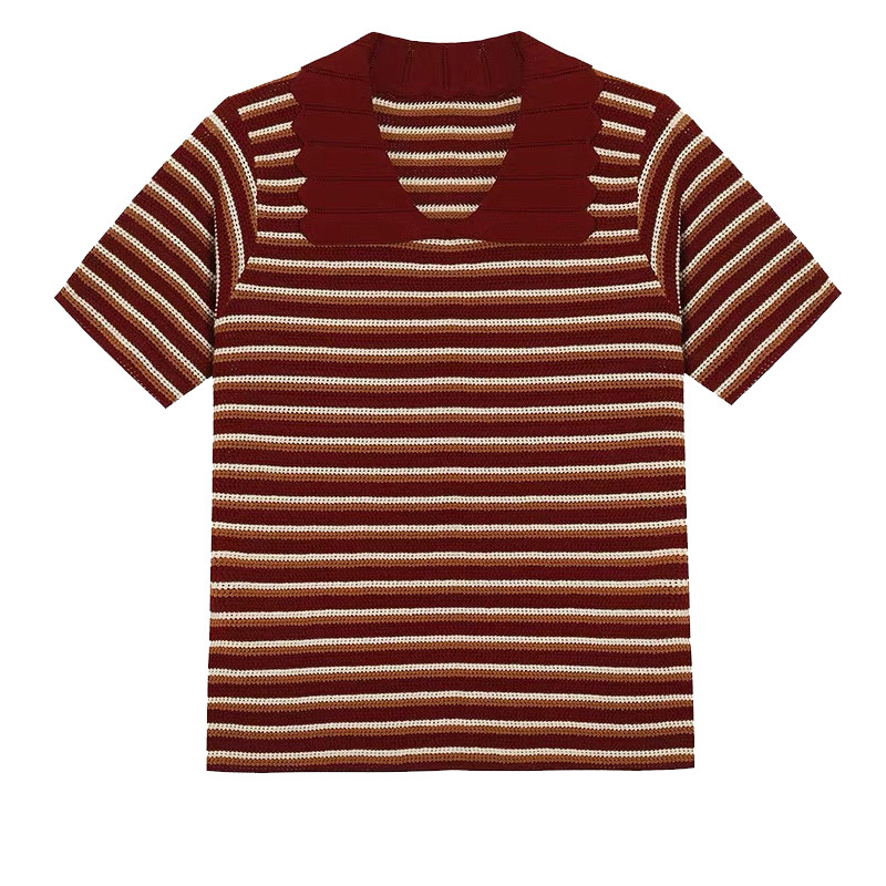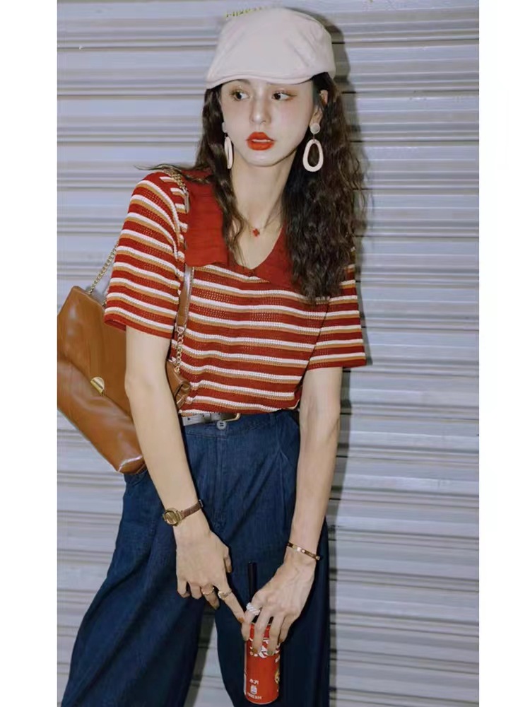 polo领上衣女小众别致独特设计高级感夏季正肩条纹短袖t恤女