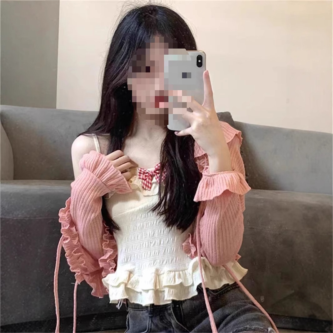 甜辣纯欲蝴蝶结可爱小吊带背心女夏季日系软妹木耳边内搭打底上衣