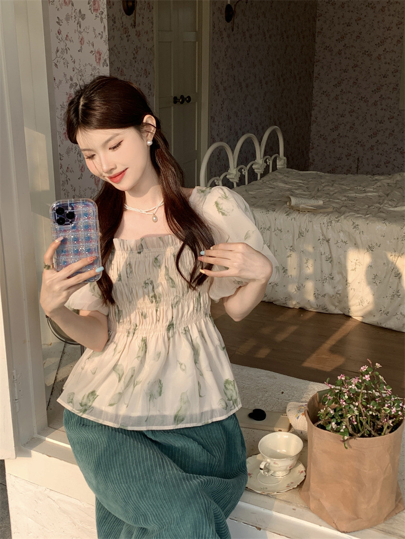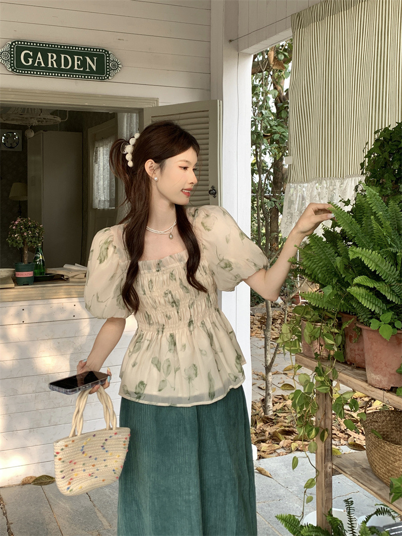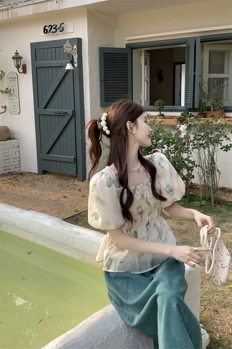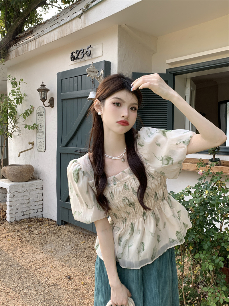 法式小众设计感轻熟方领泡泡袖雪纺衬衫高级感气质碎花超仙女上衣